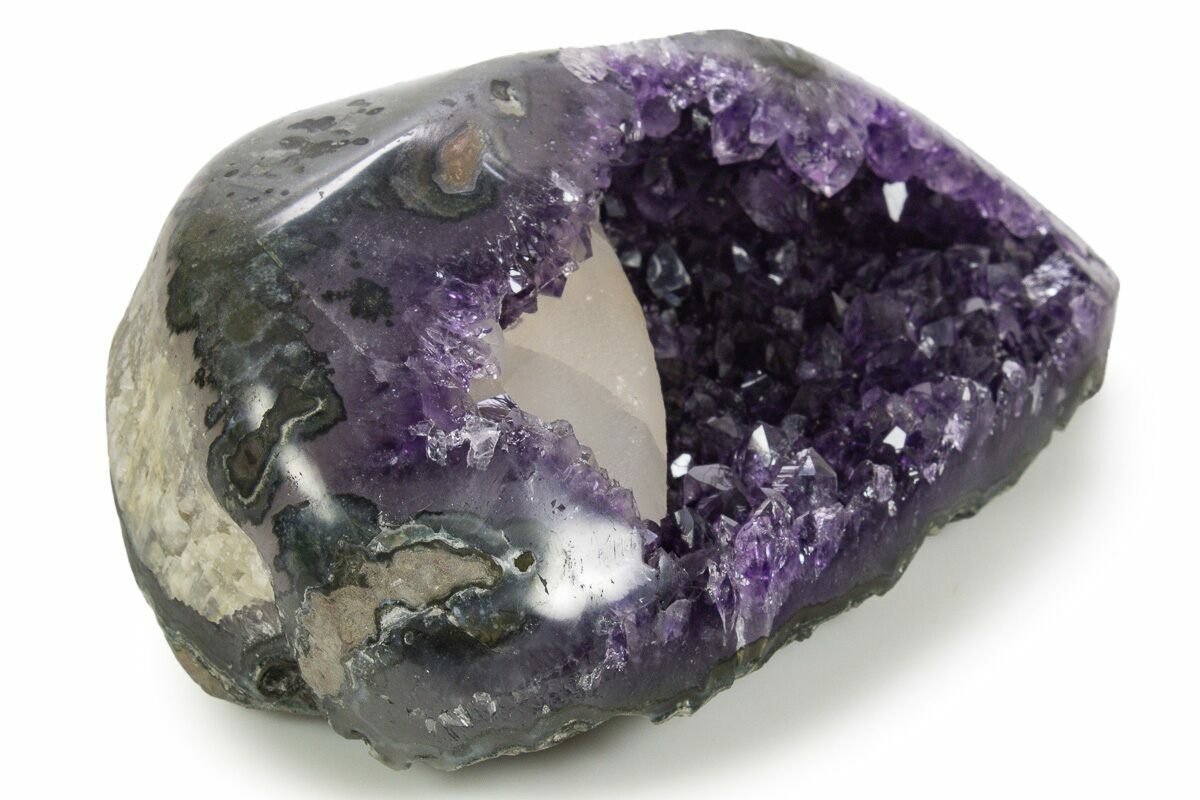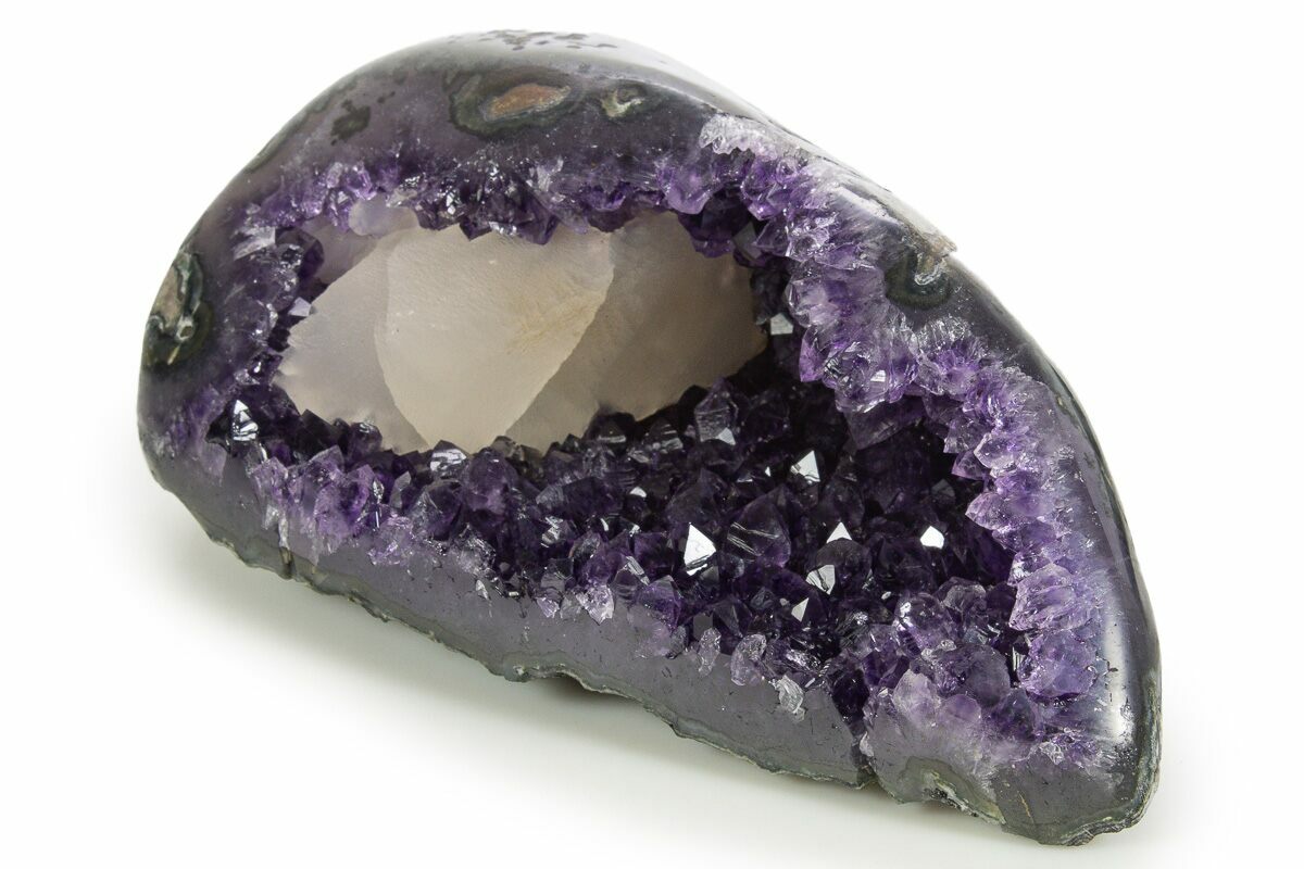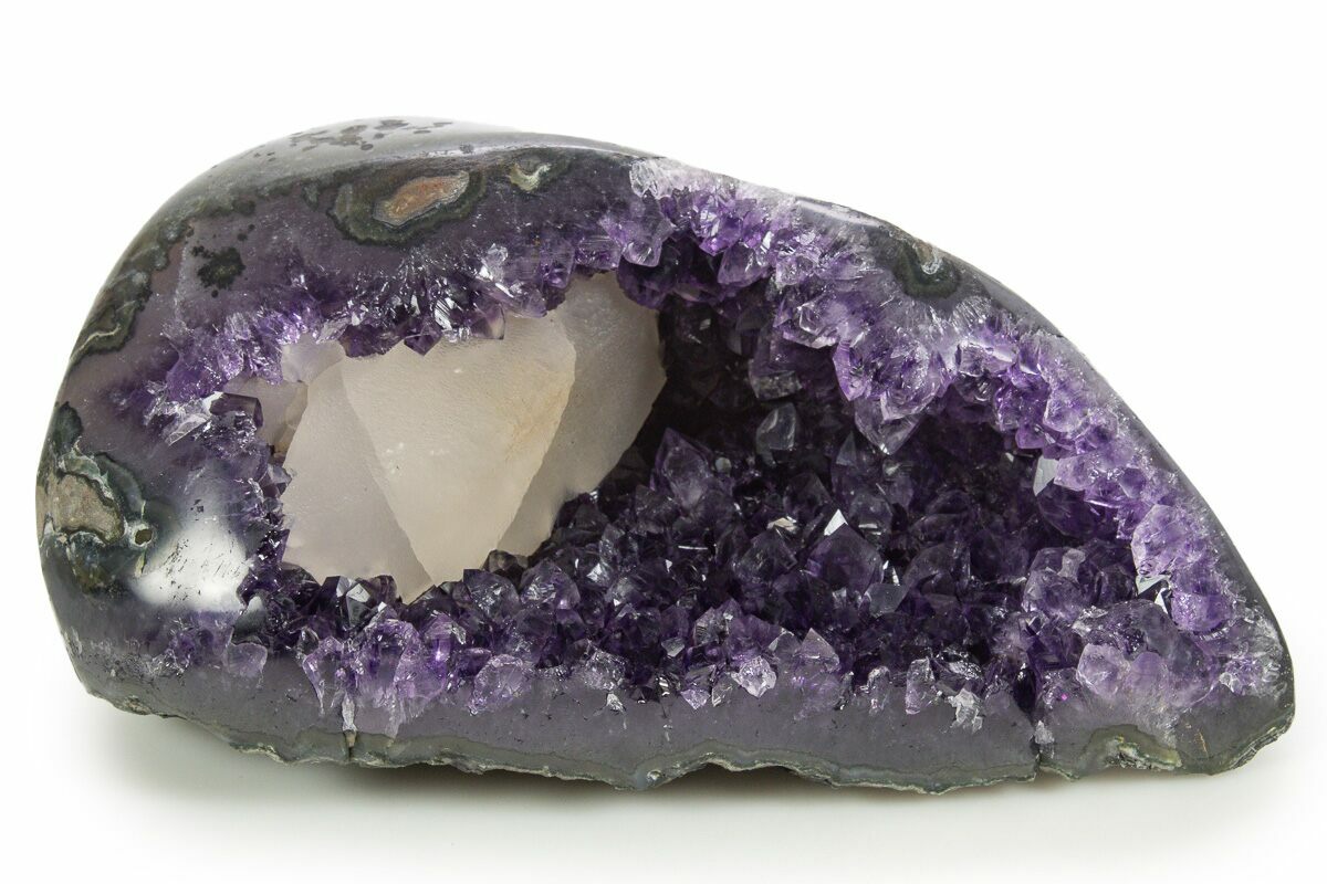 6.1" Sparkly Deep-Purple Amethyst Geode with Calcite - Uruguay