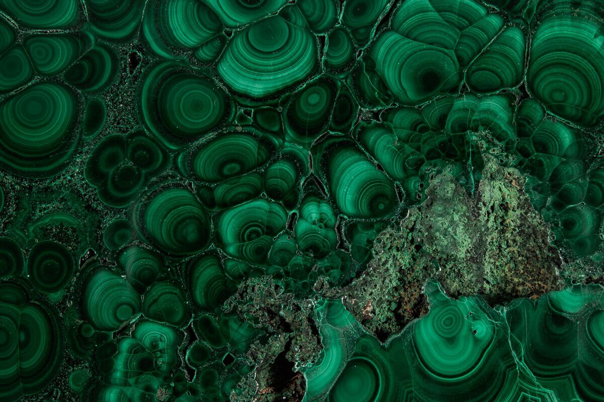 Malachite results from the weathering of other copper ores, and is very often found associated with other copper-based minerals such as azurite and chrysocolla. It can be found in copper deposits around the world, but the Democratic Republic of the Congo is the primary source for polished malachite and mineral specimens.