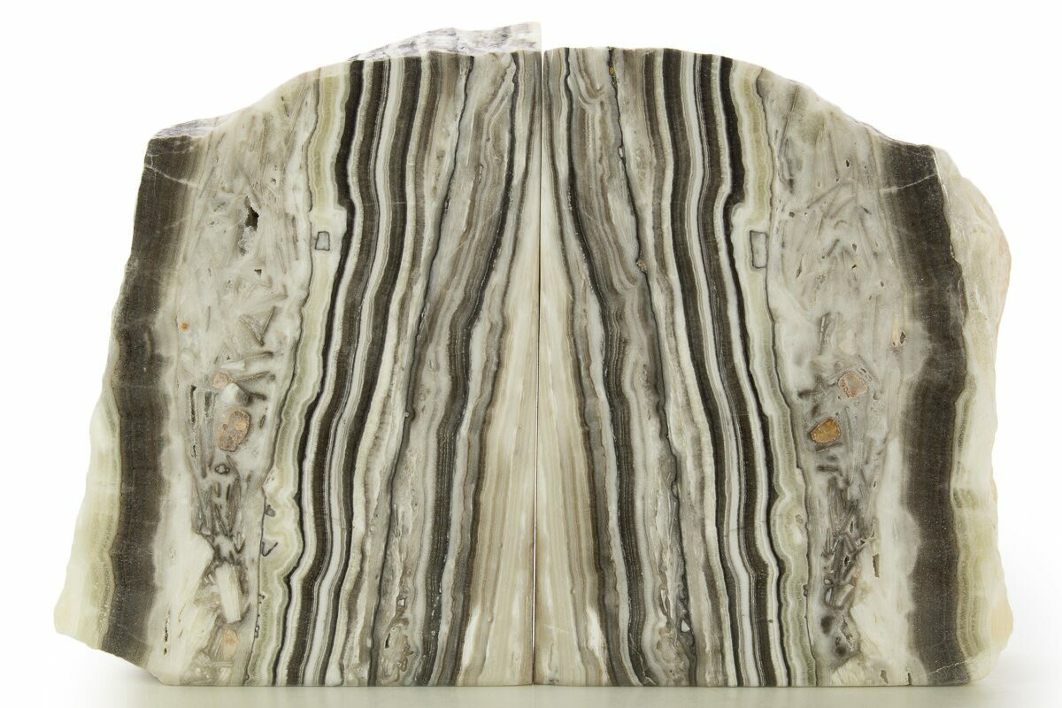 6.2" Polished Banded Zebra Calcite Bookends - Mexico