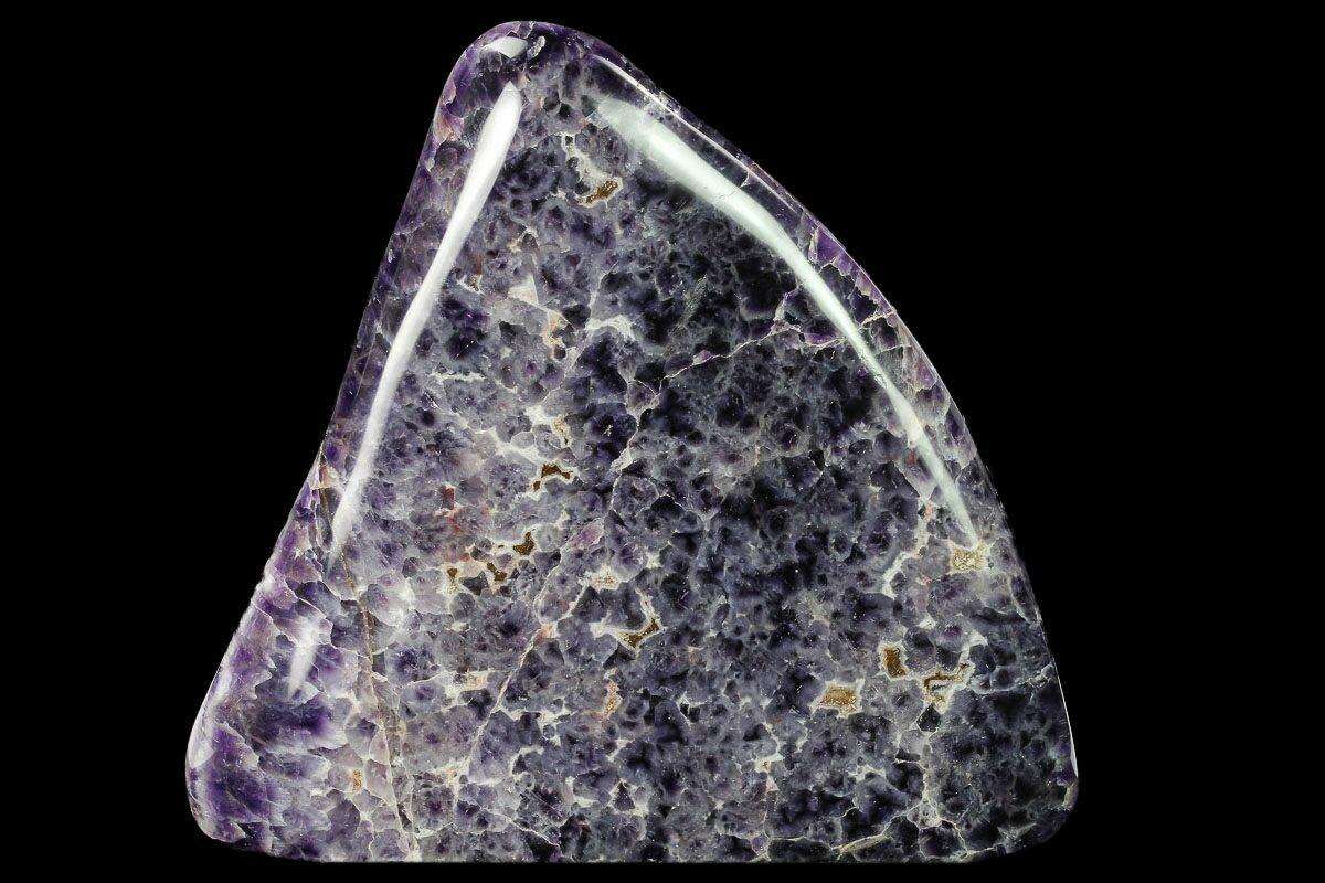 This is a beautiful freeform made from a deep purple amethyst formation that's known as chevron amethyst. It was collected from a recently discovered amethyst vein in Morocco. The bottom of the specimen has been cut flat so it stands nicely on its own.