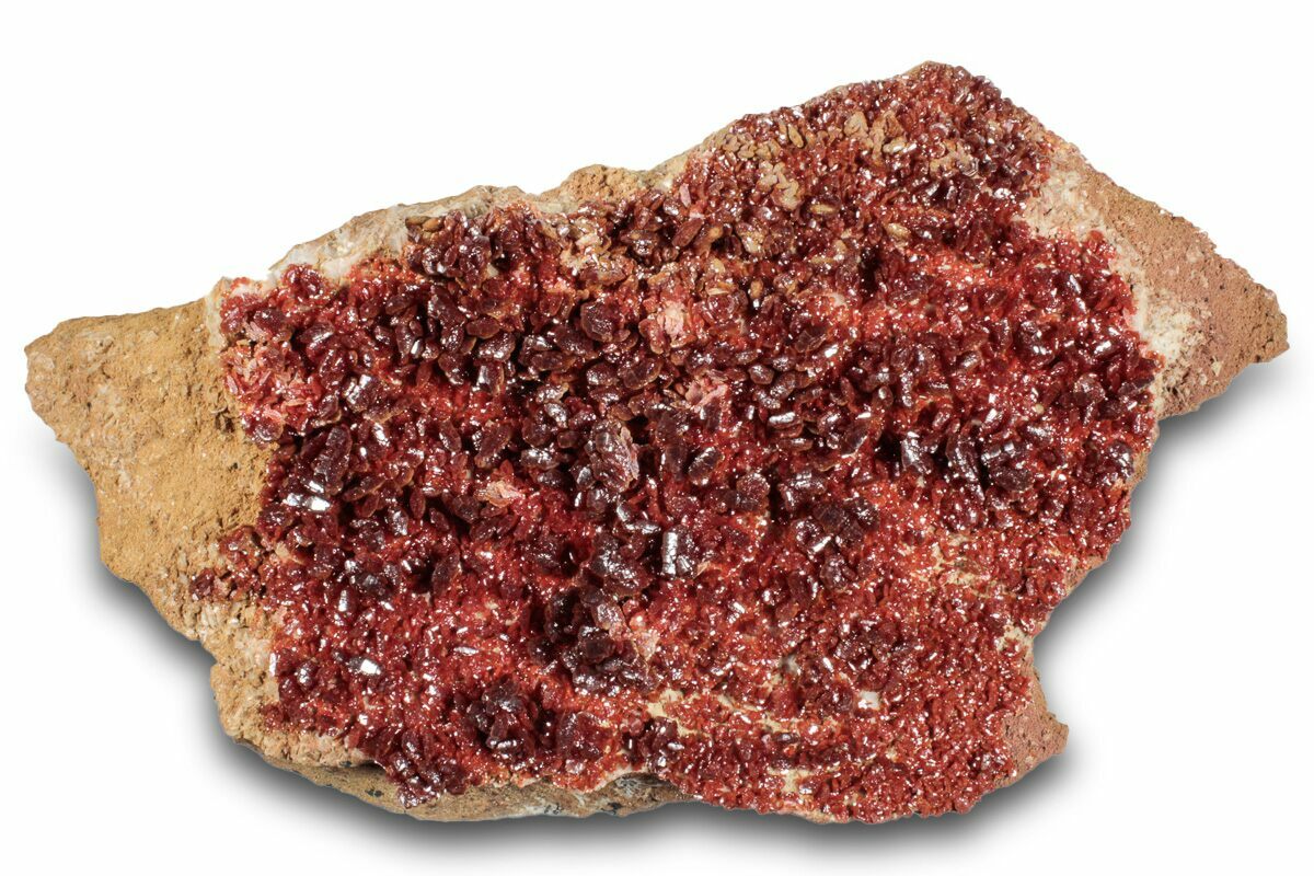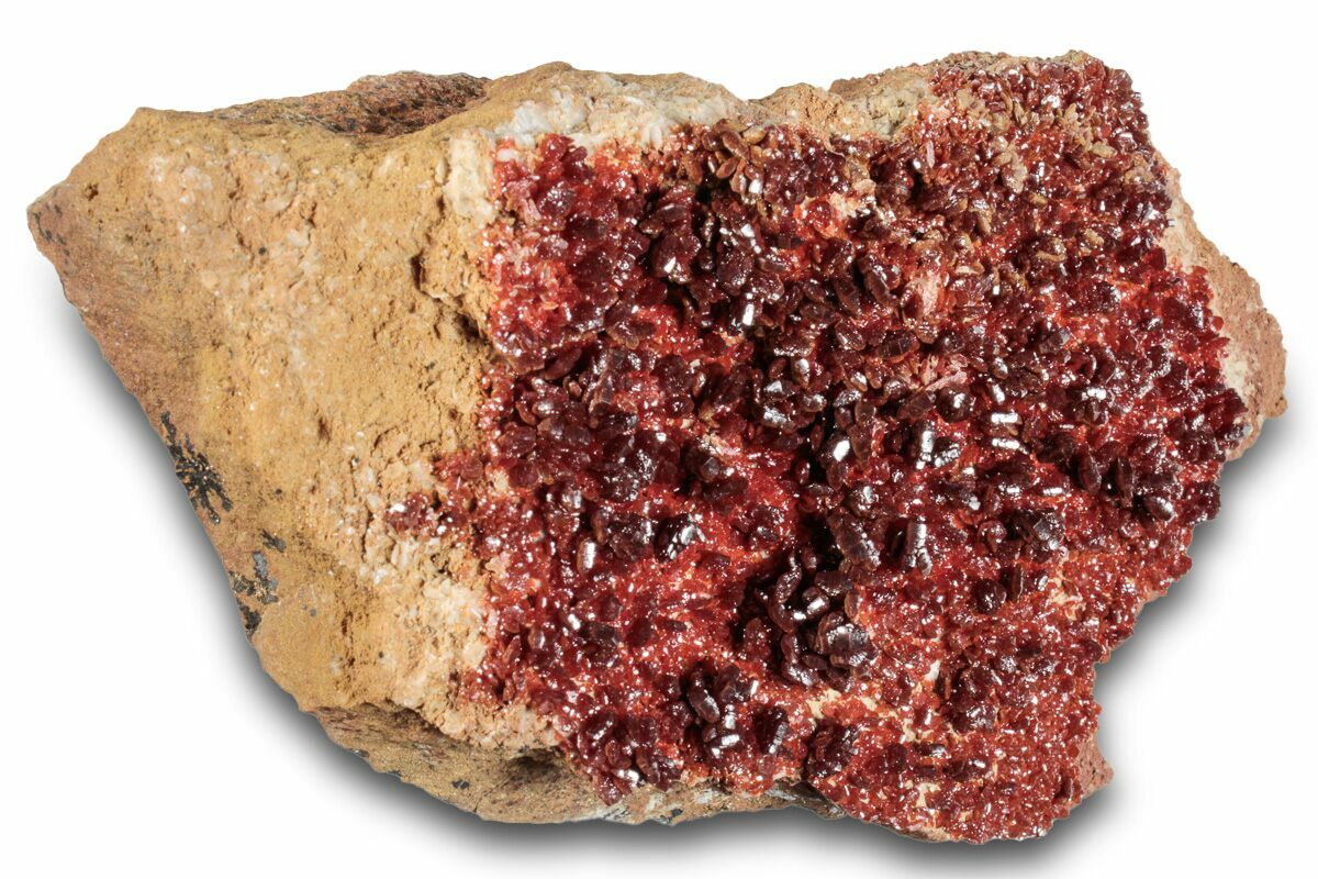 6.25" Glittering, Ruby Red Vanadinite Crystals on Barite - Morocco