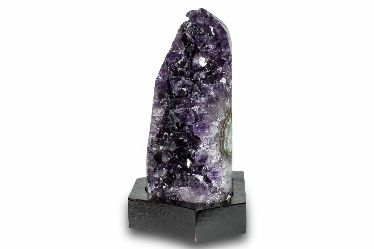 6.3" Deep Purple Amethyst Geode With Wood Base - Uruguay