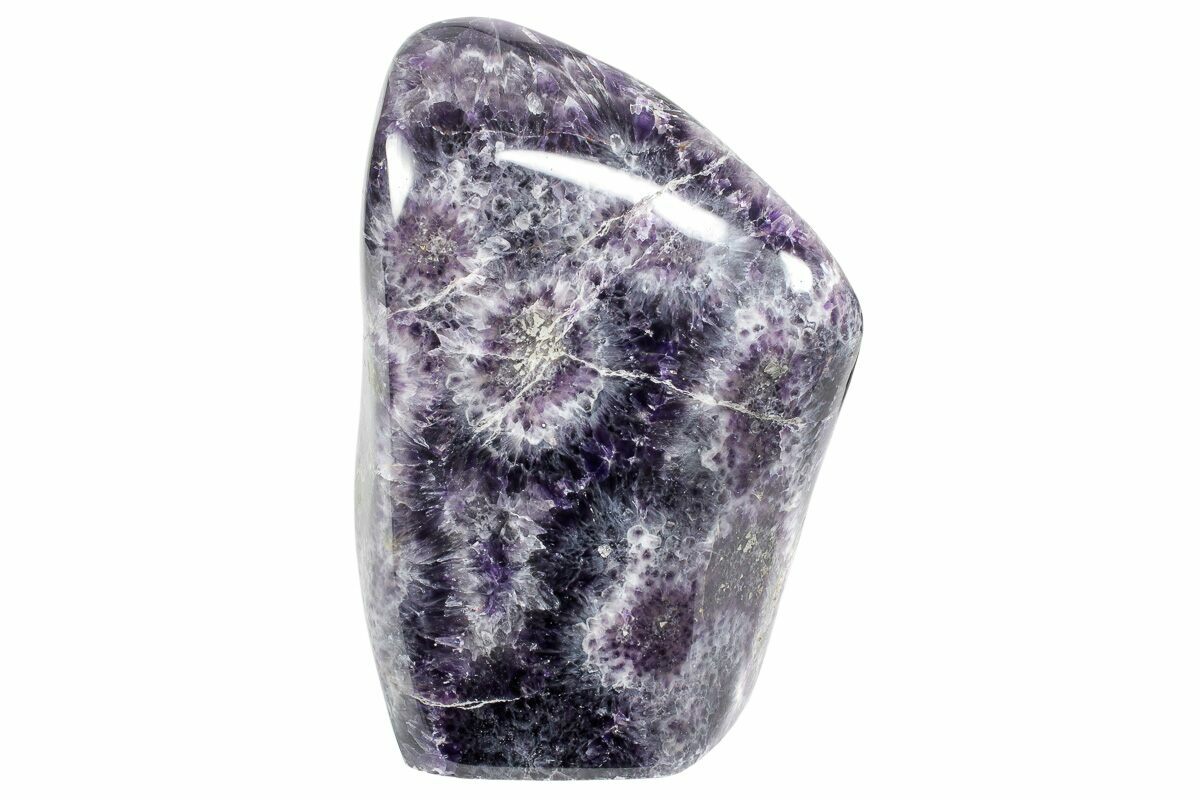 This is a beautiful free-standing sculpture made from a deep-purple amethyst formation that's known as chevron amethyst. The bottom of the specimen has been cut flat so that it stands nicely on its own. This specimen was collected, cut, and polished in Madagascar.