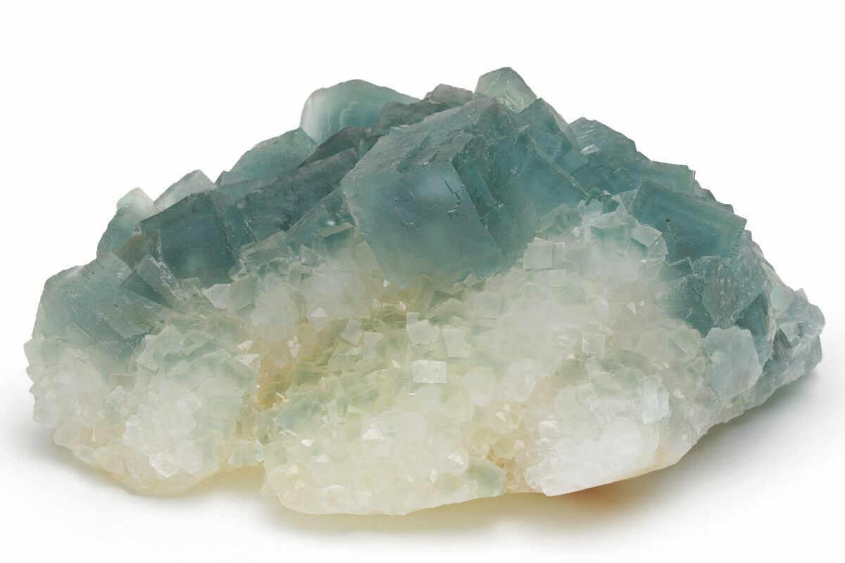 6.4" Cubic, Blue-Green Fluorite Crystal Cluster with Phantoms - China