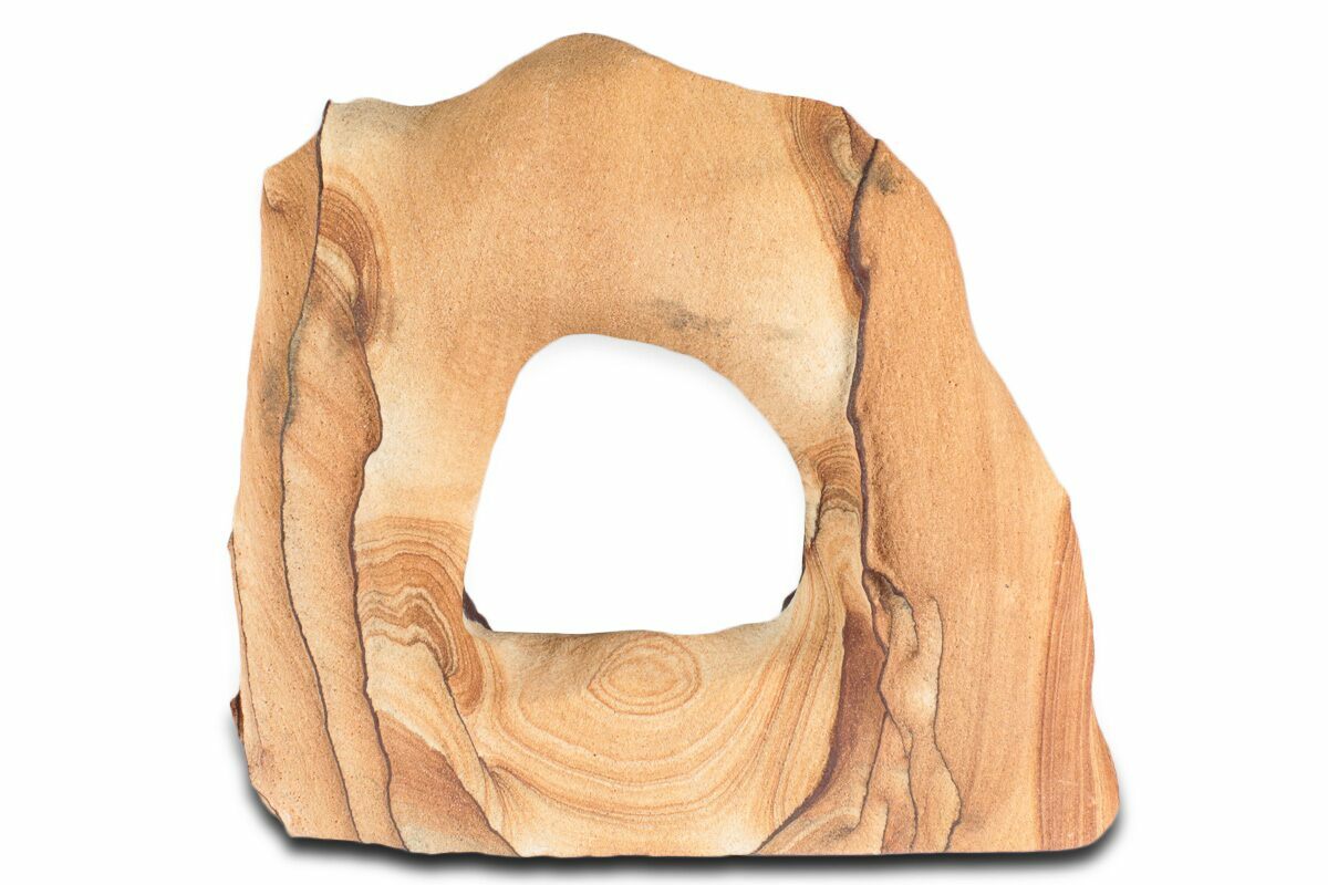 The stone's striking banding and patterns are entirely natural, formed by the infiltration of iron oxide-rich groundwater over millennia. These vibrant colors can become even more pronounced through exposure to intense heat. This effect was first discovered when a geologist noticed a piece of sandstone with brighter-than-usual coloring buried in the dirt. Further investigation revealed that the rock’s vivid hues resulted from chemical alterations caused by exposure to extreme heat, likely from a forest fire. Inspired by this discovery, the geologist experimented with "baking" the stone in an oven at 500°F for several hours, successfully replicating the effect.