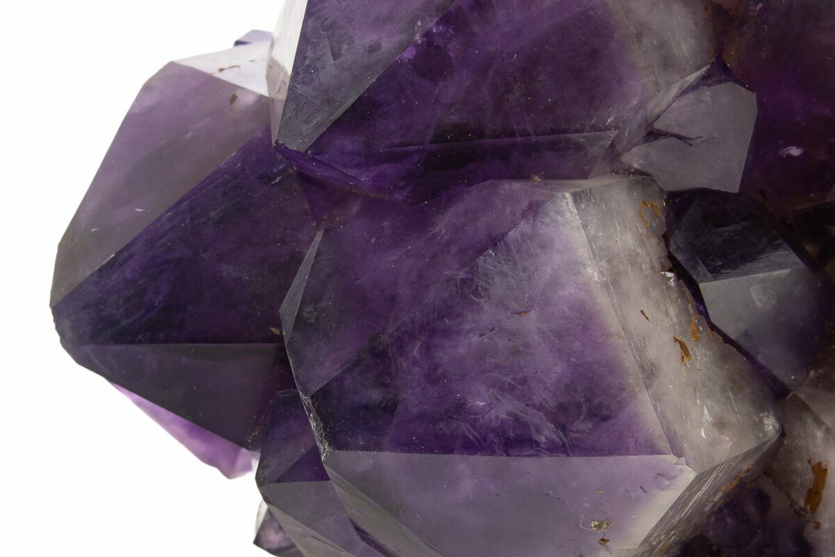 This is a stunning, 6.6" wide amethyst crystal cluster with beautiful purple coloration and exceptional luster, collected from the Democratic Republic of the Congo. These crystals have undergone no color treatment or polishing. The orange-red color across some of the crystals can be attributed to iron oxidation.