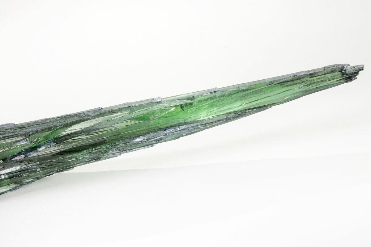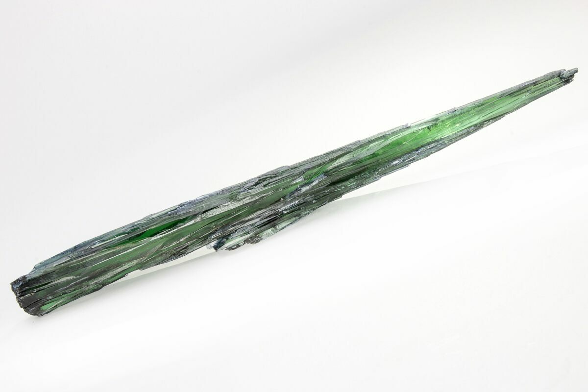 Vivianite is a hydrous iron phosphate mineral that appears in flat, prismatic crystals. This mineral is highly sought after for its deep teal coloring and crisp translucence. It looks like a mystical glass that may be found in a fantasy movie. While it is commonly an iron phosphate mineral, occasionally the iron ion maybe substituted for magnesium, calcium, or manganese.
