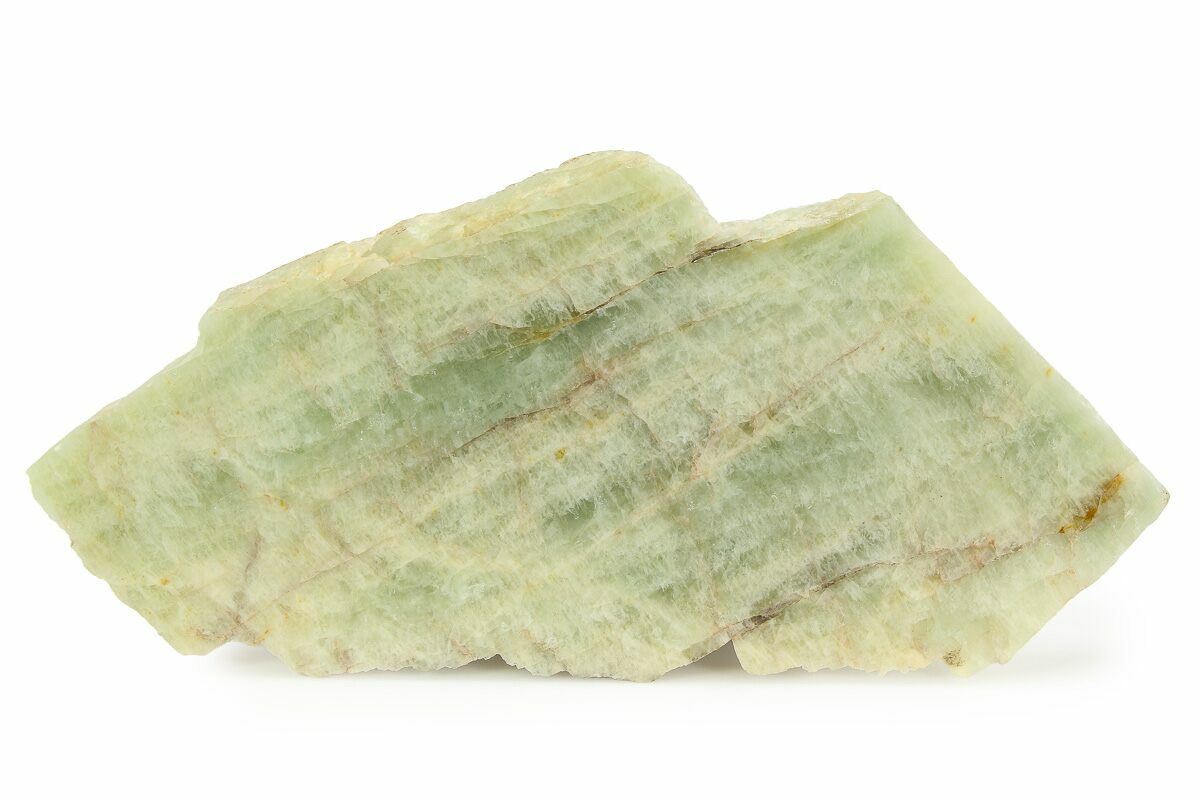 This is a 6.6" slab of beryl that has been cut and polished to a glossy finish on one side. The beryl comes from Spargoville, near Kambalda in Western Australia. This massive beryl specimen bears light-green to blue-green coloration. It comes with an acrylic display stand.