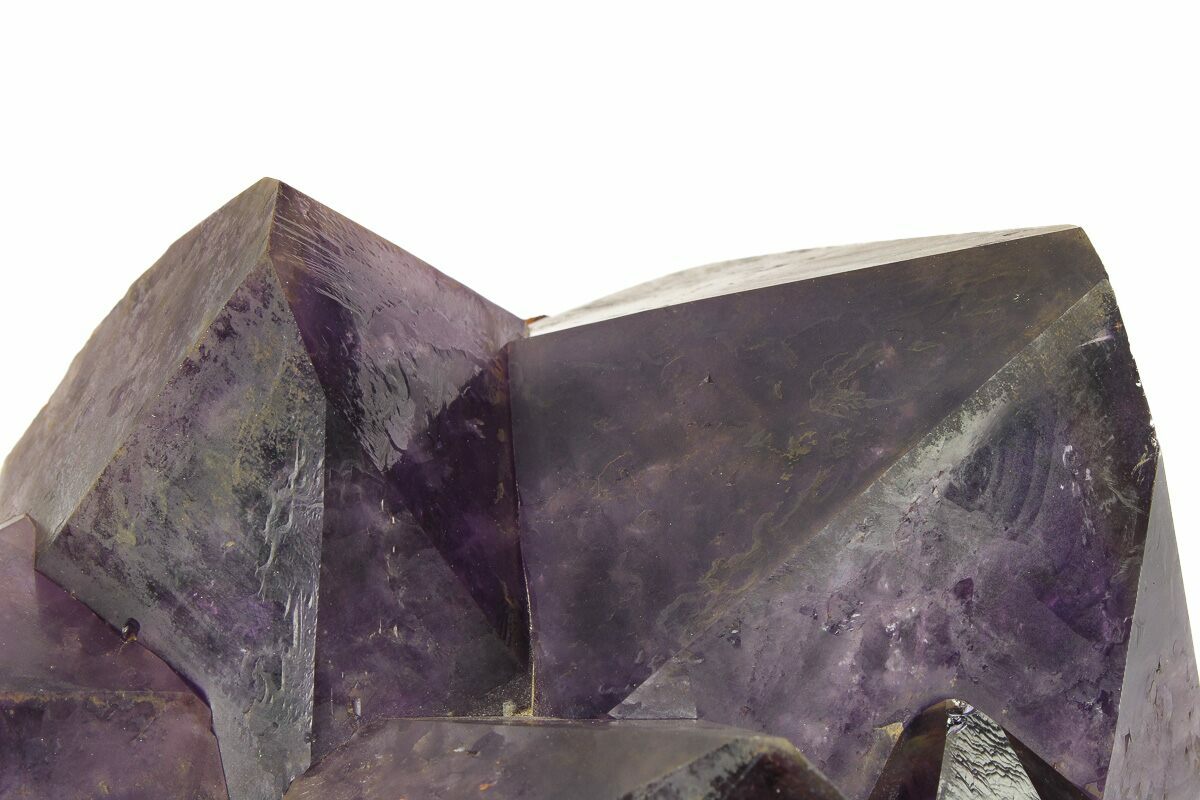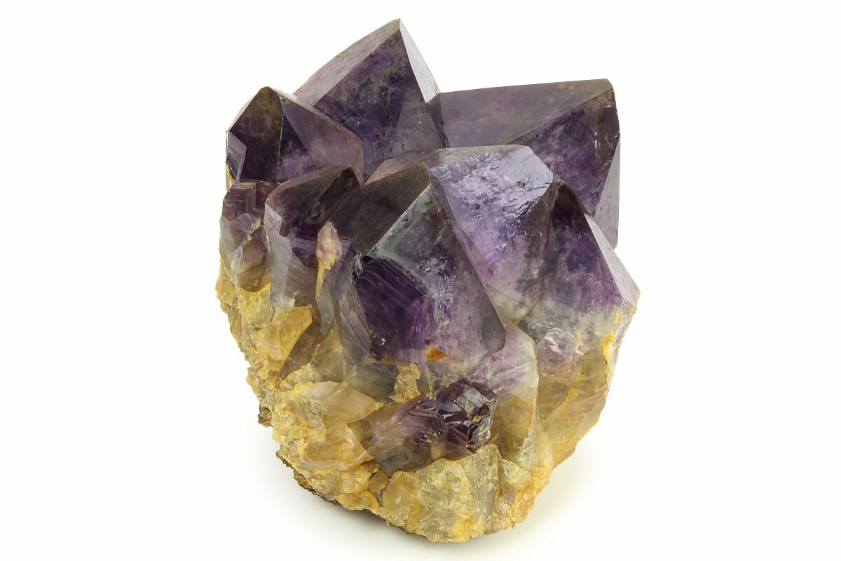 Amethyst clusters from the Democratic Republic of the Congo are renowned for their exceptionally dark, saturated purple color and their impressively large, well-formed crystals. Many Congolese clusters display deep violet to almost inky tones, often with excellent luster and sharp crystal terminations. Compared to amethyst from other localities, Congo material tends to have thicker, more robust crystal points that grow densely together, giving these clusters a bold, architectural presence that is especially prized for display.