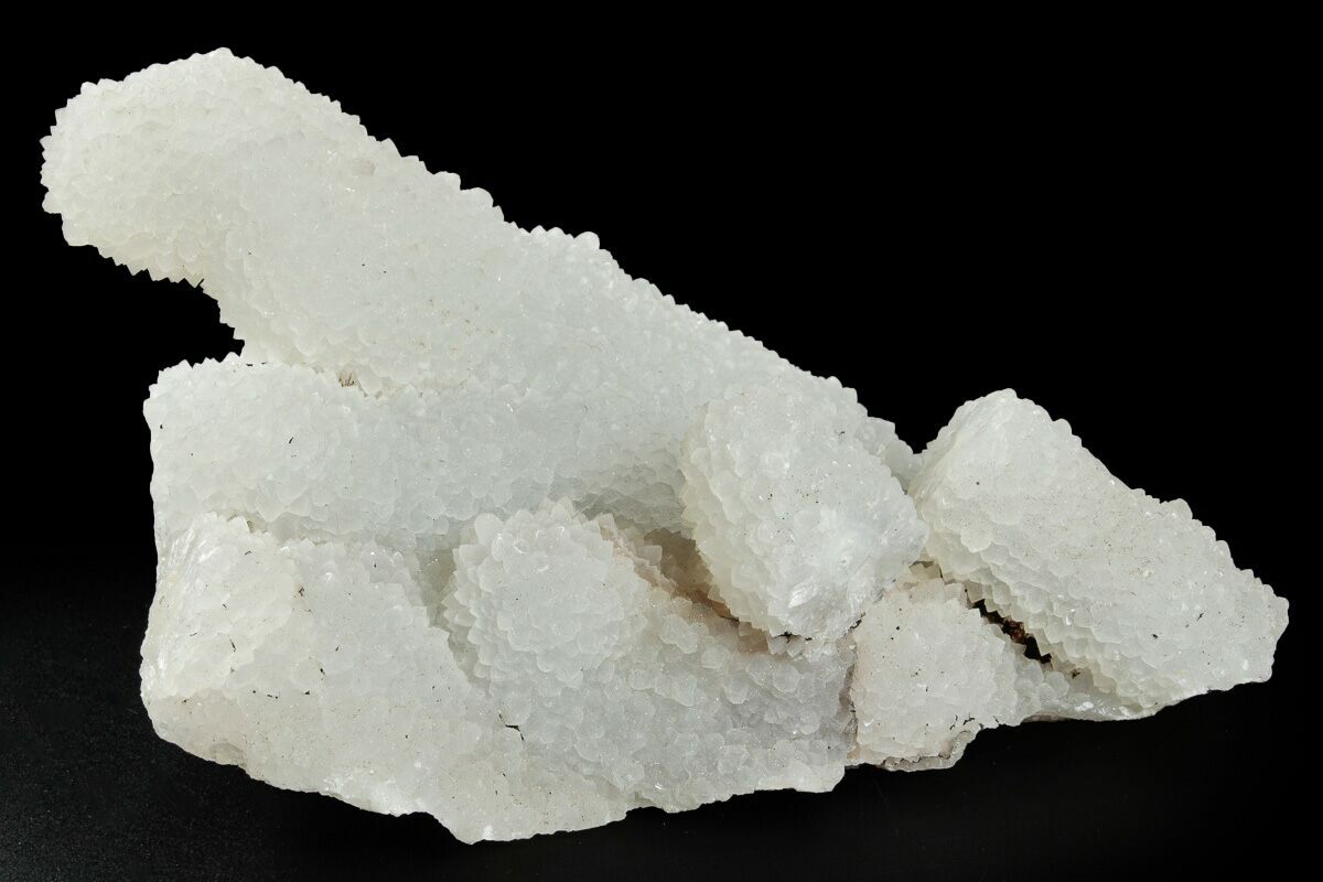 This is a gorgeous, 6.7" wide, sparkling chalcedony stalactite formation, collected from Maharashtra, India. This specimen would have formed from the ceiling of a cavity within the host rock. It sits nicely on a flat surface without the need for a display stand.