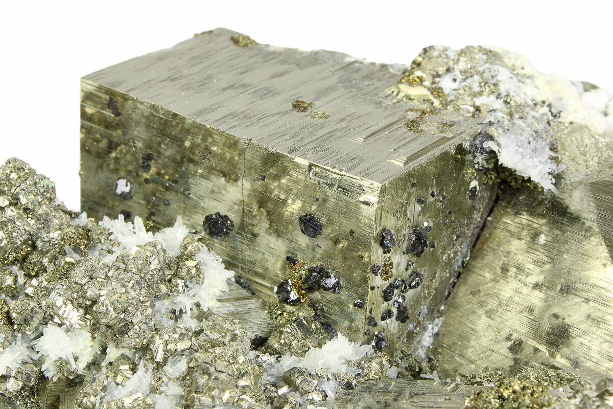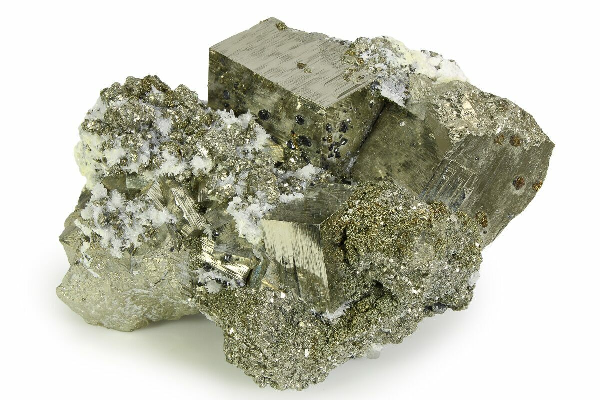 6.7" Striated Cubic Pyrite Crystals with Quartz & Sphalerite - Peru