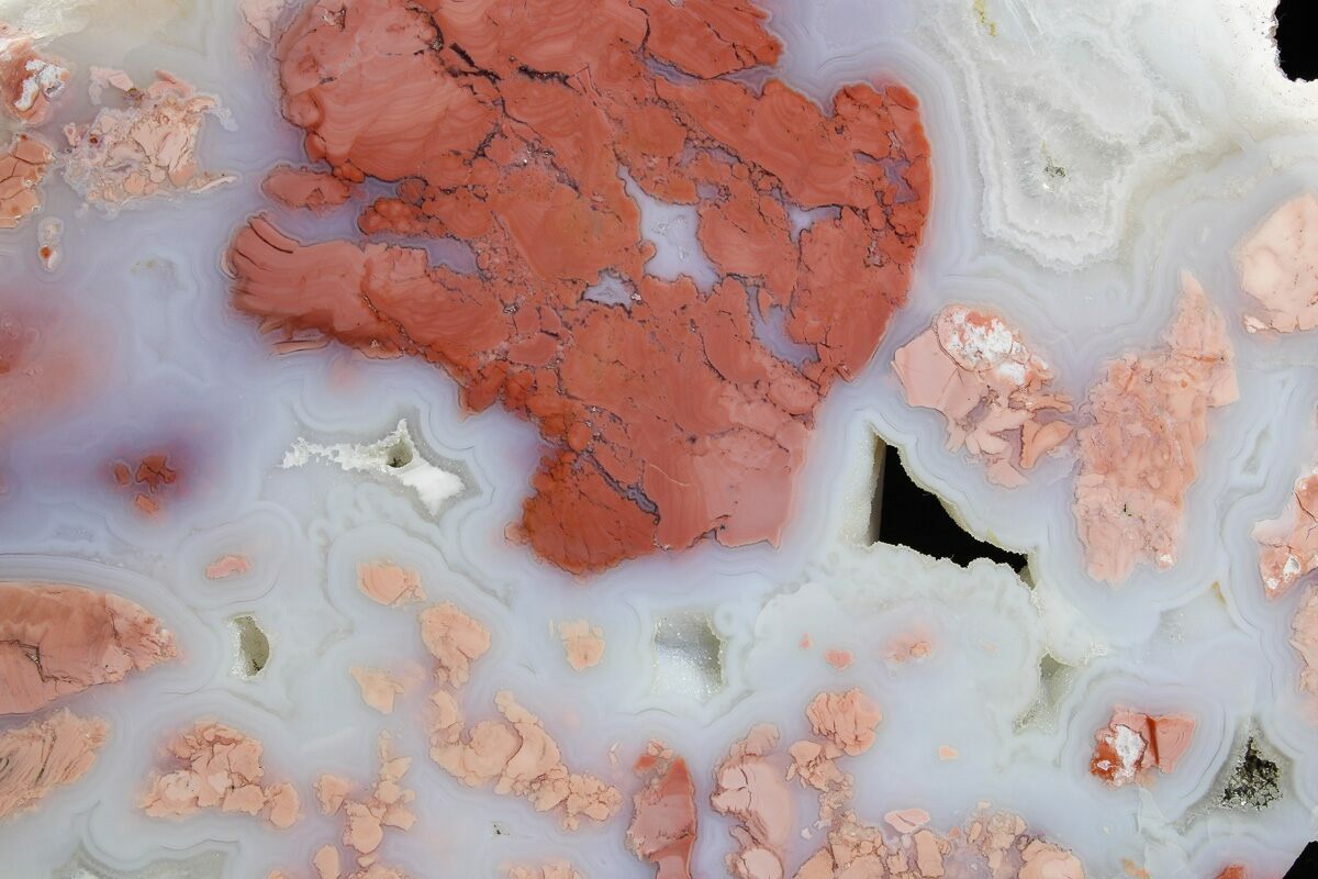 Cotton Candy agate is a recently discovered material collected from Mexico. It is named for its confectionary appearance, with multiple shades of pink brecciated jasper surrounded by fluffy bands of whitish agate and druzy quartz. Its popularity is also rising thanks to its aptitude for lapidary work: shaping and polishing brings out tons of character and detail in this already stunning agate.