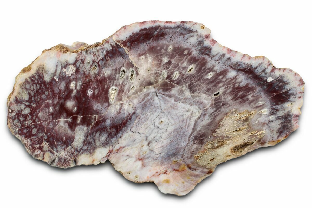 This is a colorful slab of agate that displays a mixture of red, purple, and pink hues. It measures 6.9" wide and has been polished to a glossy finish on one side.
