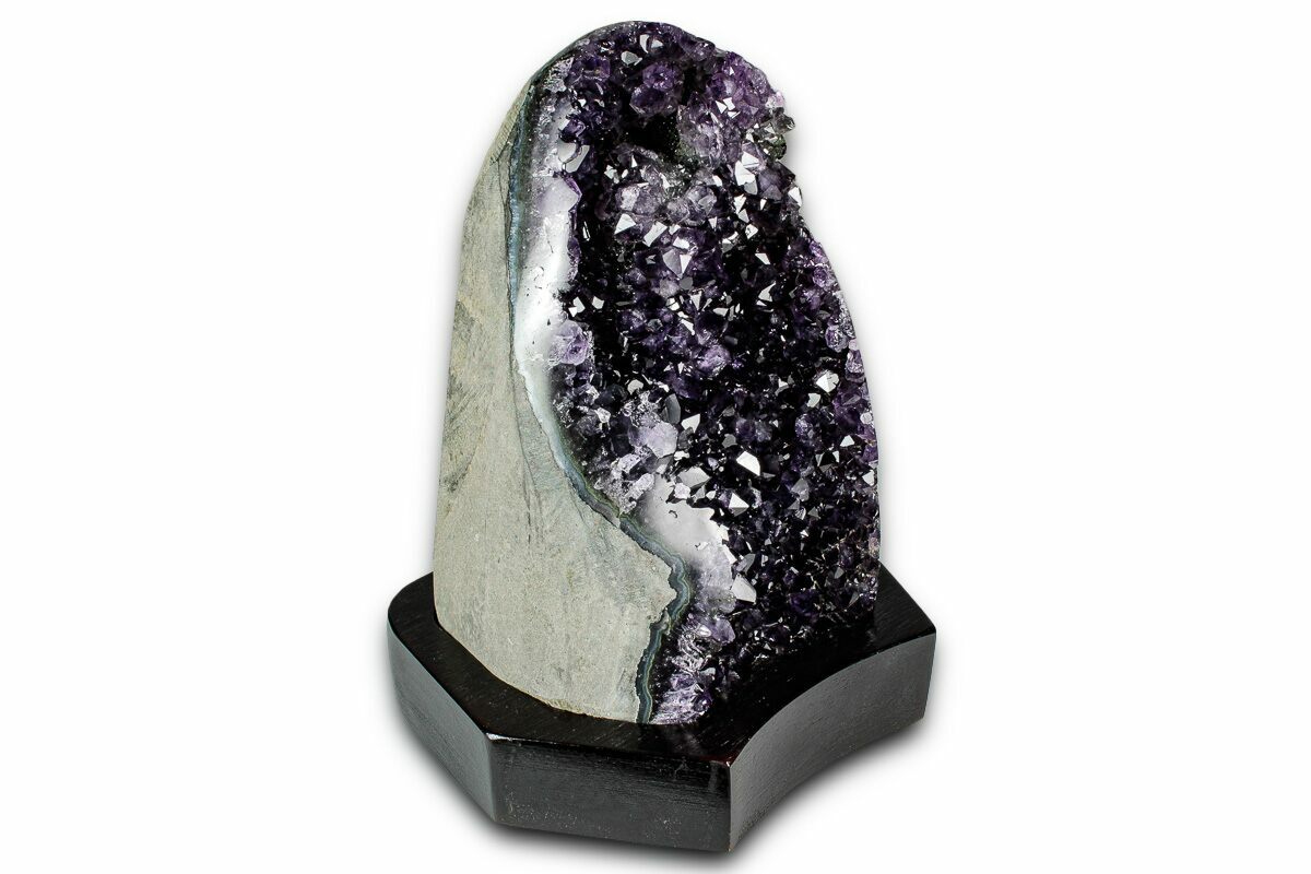 6" Deep Purple Amethyst Geode With Wood Base - Uruguay