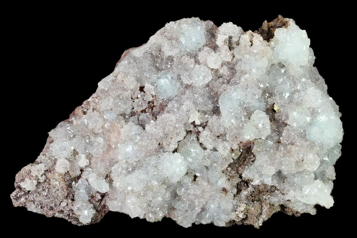 This is a lustrous formation of light blue hemimorphite crystals. This specimen was collected from M'fouati in the Bouenza Department of the Republic of the Congo.