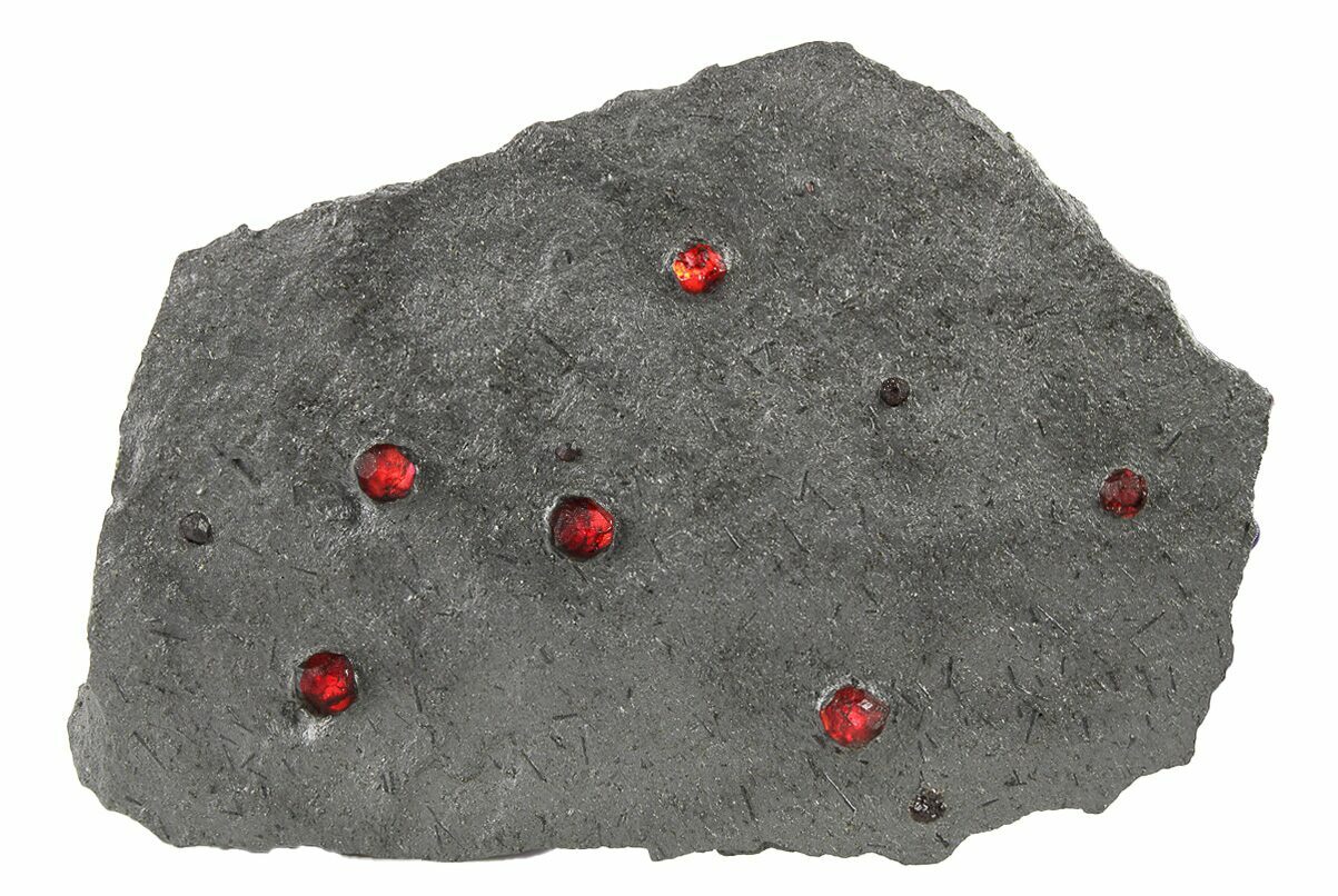 6" Plate of Nine Red Embers Garnets in Graphite - Massachusetts