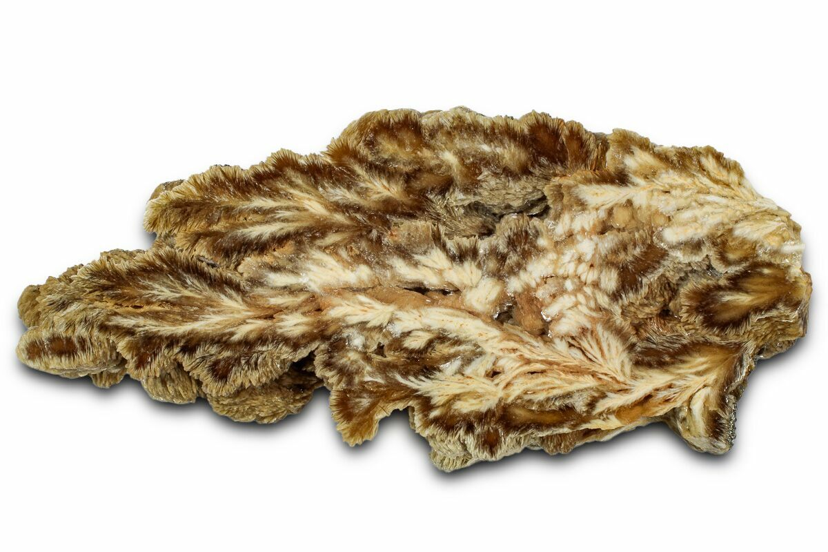 This is a 6 x 2.7" cut and polished slice of barite with glittering pyrite from the Lubin Copper Mine in Poland. The barite has formed in a unique branching structure and is fluorescent under UV light.