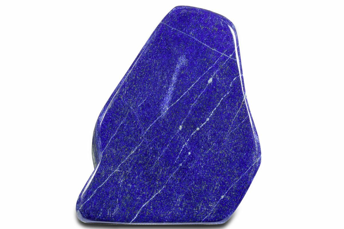 This is a 6" wide, polished piece of lapis lazuli with streaks of sparkling pyrite running through it. This vibrant blue stone was mined from northern Pakistan.