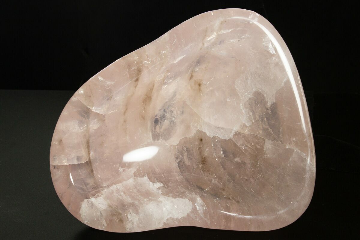 This is a gorgeous, 7.1" wide, polished rose quartz bowl/dish. It has been hand carved/polished out of a solid piece of rose quartz crystal.