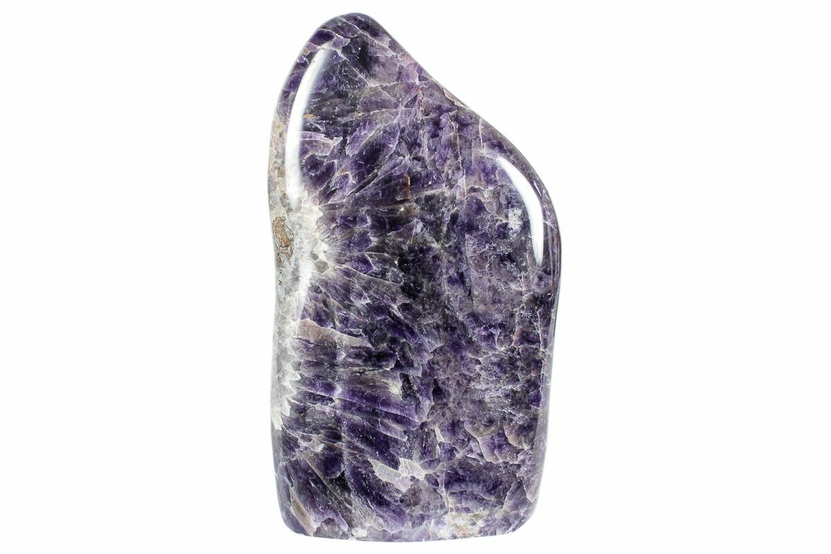 This is a beautiful free-standing sculpture made from a deep-purple amethyst formation that's known as chevron amethyst. The bottom of the specimen has been cut flat so that it stands nicely on its own. This specimen was collected, cut, and polished in Madagascar.