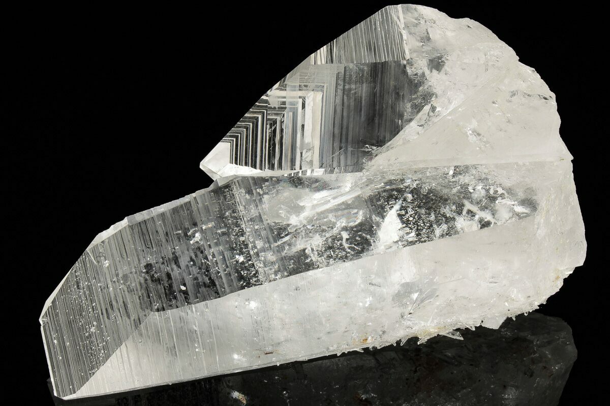 This is a stunningly glass-like, 7.4" long quartz crystal cluster that was collected from the famous Peña Blanca Mine in Colombia. Crystals from this location are frequently referred to as "Lemurian Quartz" and steeped in metaphysical lore. This specific variety of quartz crystal has gem-quality clarity allowing the viewer to peer seamlessly through the prism. In addition to crisp faceting and needle-sharp terminations, this specimen is wreathed in horizontal striations that give it a satisfying texture and stepped appearance.