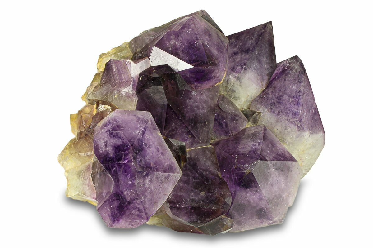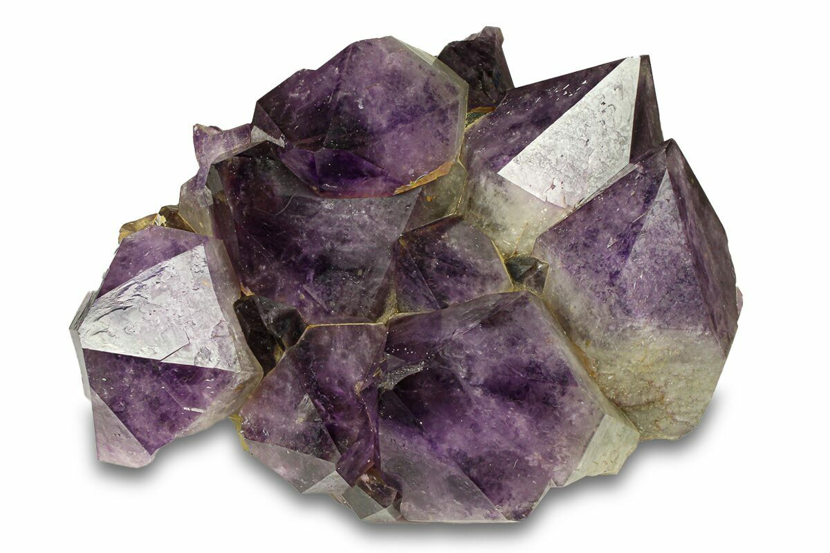 Amethyst clusters from the Democratic Republic of the Congo are renowned for their exceptionally dark, saturated purple color and their impressively large, well-formed crystals. Many Congolese clusters display deep violet to almost inky tones, often with excellent luster and sharp crystal terminations. Compared to amethyst from other localities, Congo material tends to have thicker, more robust crystal points that grow densely together, giving these clusters a bold, architectural presence that is especially prized for display.