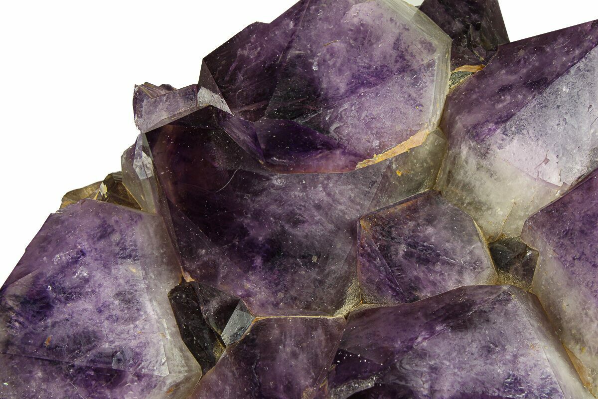 This is a stunning, 7.5" wide amethyst crystal cluster with beautiful purple coloration and exceptional luster, collected from the Democratic Republic of the Congo. These crystals have undergone no color treatment or polishing. The orange-red color across some of the crystals can be attributed to iron oxidation.