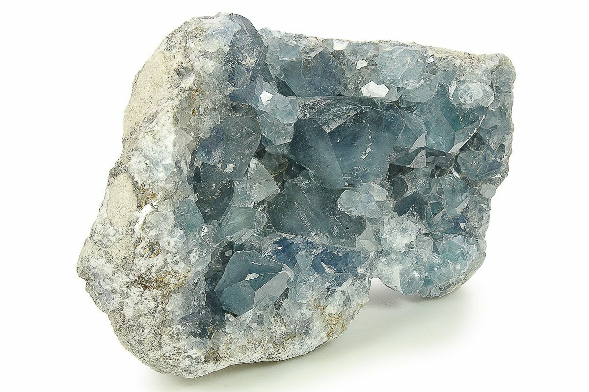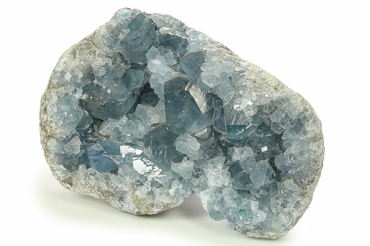 Celestite (or celestine) is a mineral consisting of strontium sulfate (SrSO4). It tends to form attractive, well-shaped crystals that are often found inside of geodes. One of the main sources of celestine is the deposits on the northwestern coast of Madagascar.