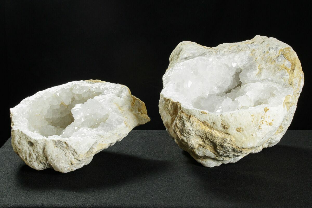 This is a 7.9" wide geode collected from Morocco. The interior of this beautiful geode is completely filled with quartz crystals. Both halves of the geode are included.