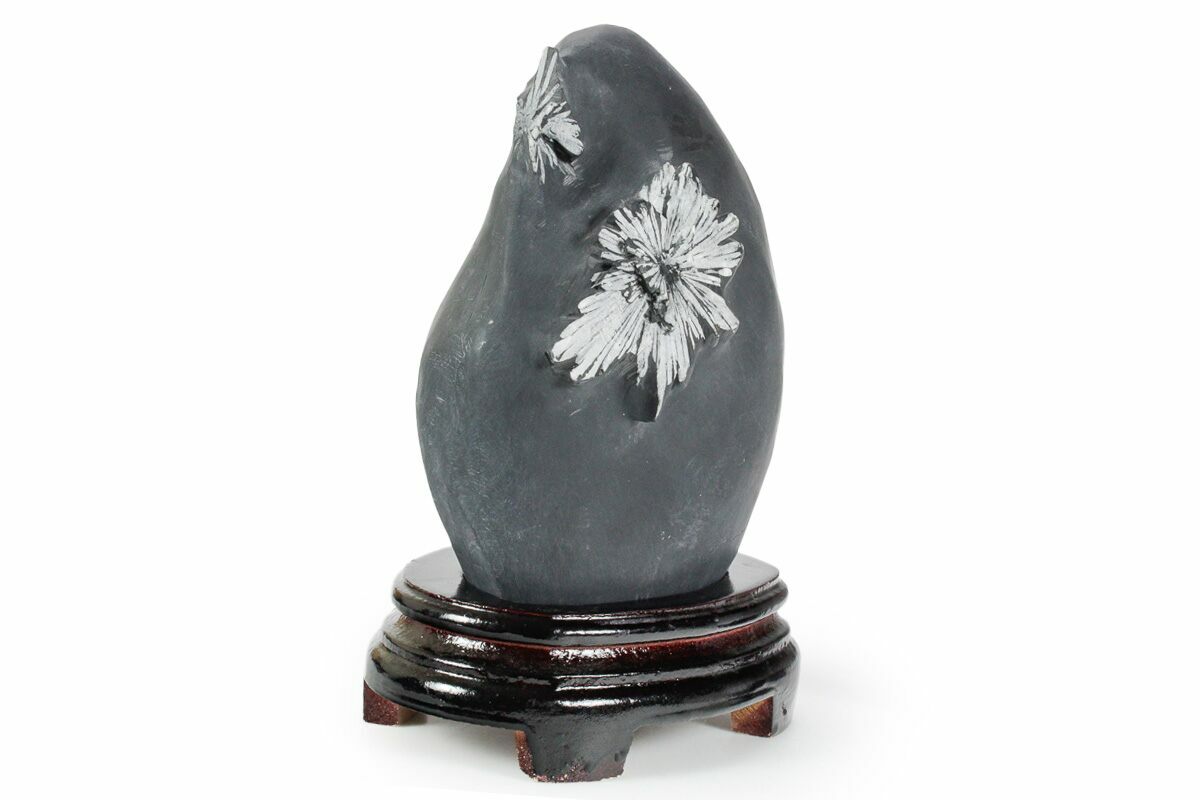 7.9" Polished Chrysanthemum Stone in Wood Base - China
