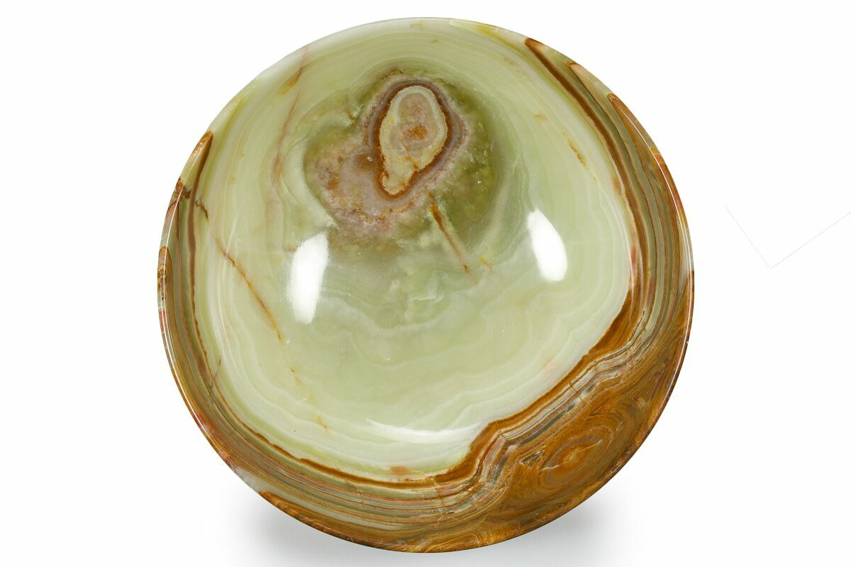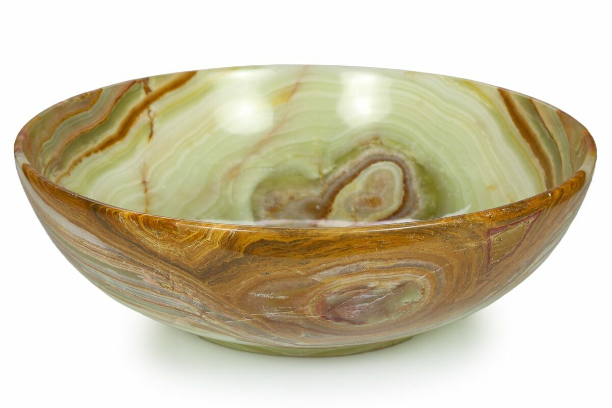 8" Polished Green Banded Calcite Bowl - Pakistan