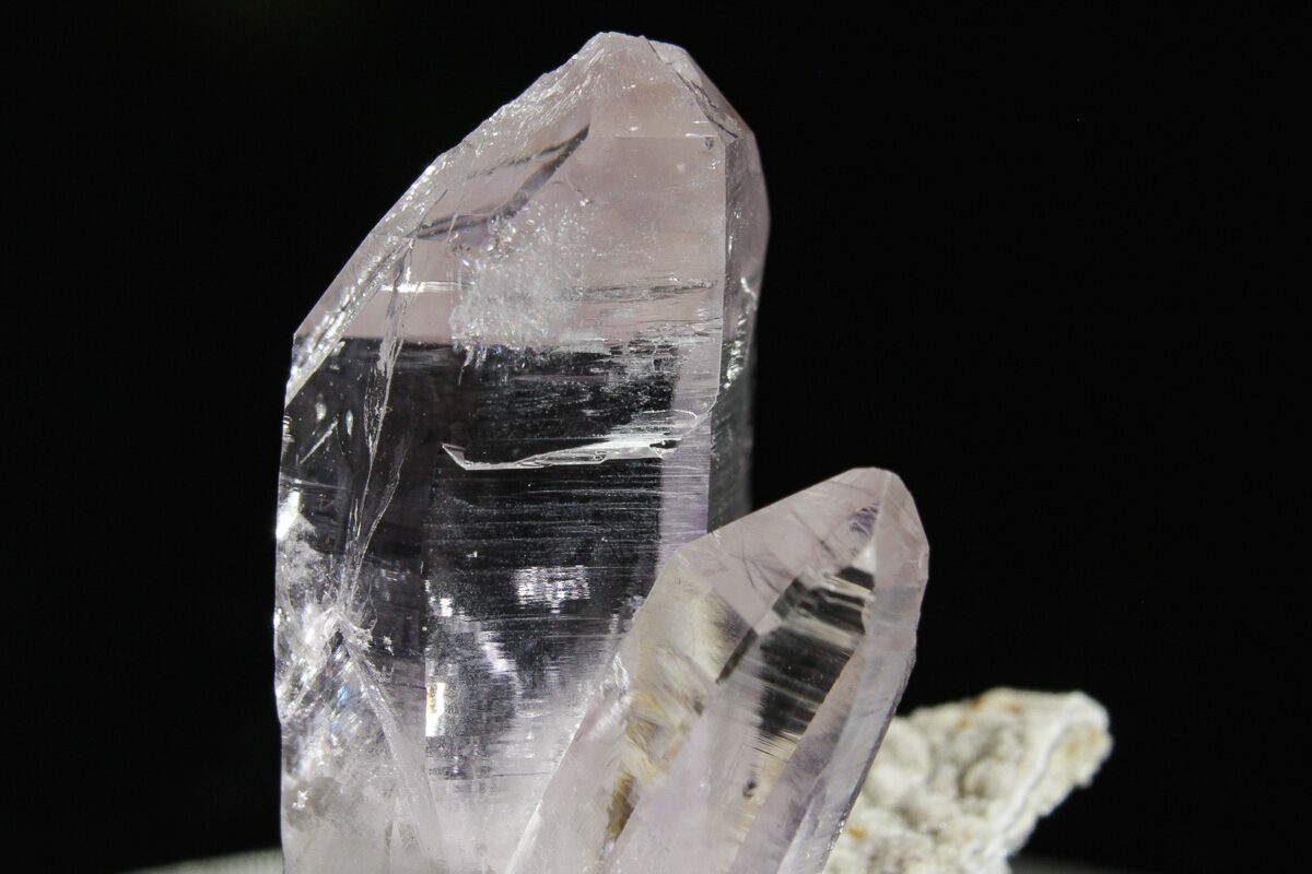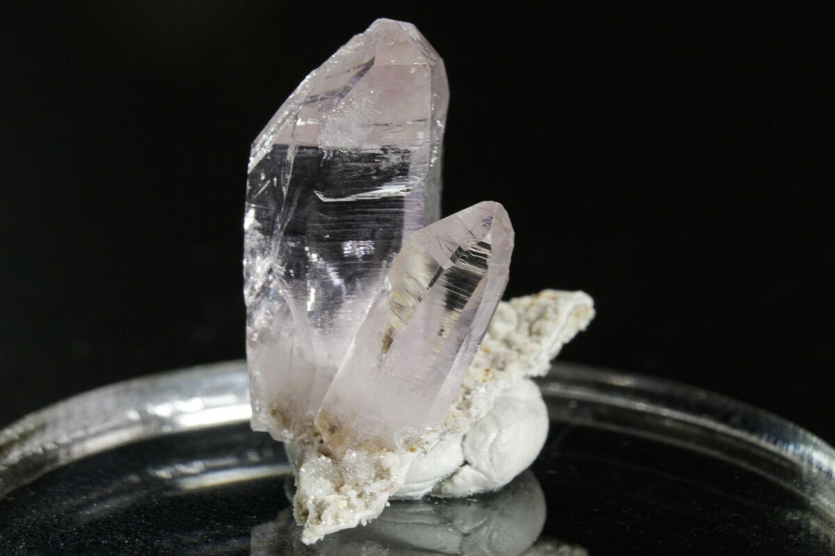 Amethyst is a purple variety of quartz (SiO2) that owes its violet color to natural gamma irradiation, iron impurities, and the presence of trace elements, which result in complex crystal lattice substitutions. It is considered a semi-precious gemstone, and just two centuries ago was considered to have a value on par with diamonds, sapphires, and rubies. The largest and best known amethyst deposits occur in southern Brazil and Uruguay, where they are found in hydrothermally-formed geodes, but many localities around the world produce an amazing variety of amethyst crystals and formations. They are almost always formed in medium- to high-temperature geological settings.