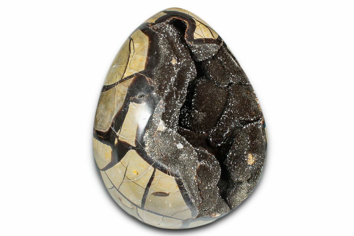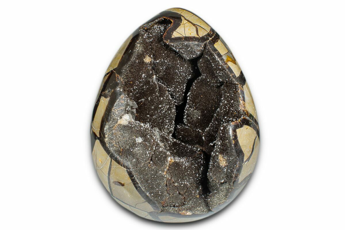 7" Polished "Dragon Egg" Septarian Geode - Free-Standing