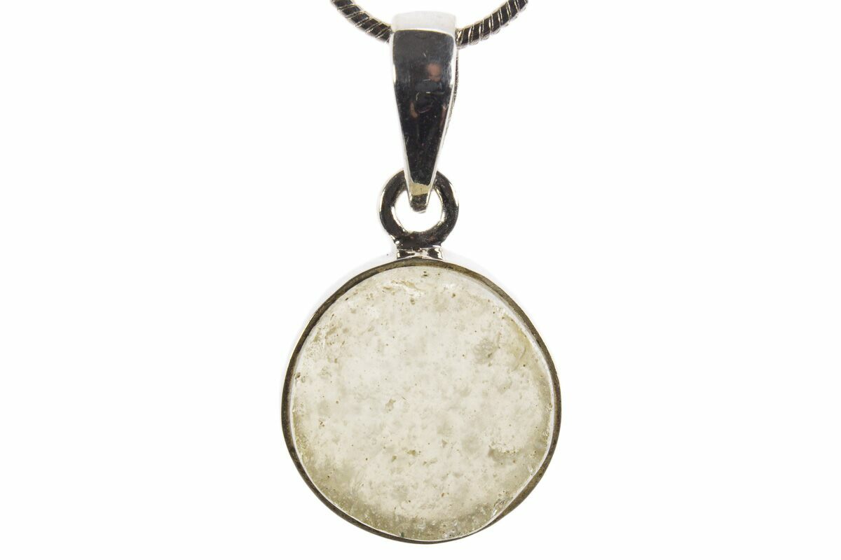 This is a 2.7 gram piece of Libyan desert glass, a type of meteorite impactite found along the Egyptian and Libyan borders. The impactite cabochon was inlaid in a 925 sterling silver pendant setting that allows you to take your favorite impactite on the go.