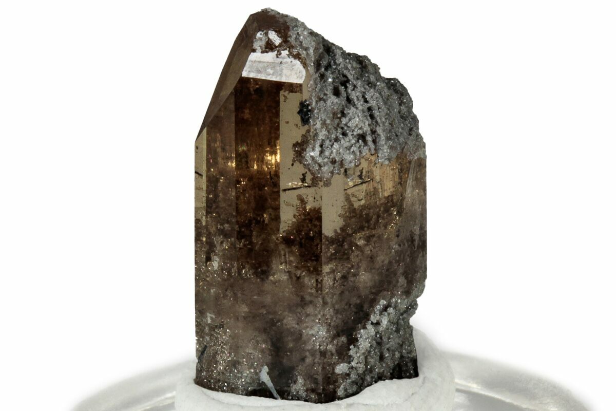 This is a gorgeous champagne topaz crystal collected from Thomas Range, Utah. The lustrous topaz has golden-brown coloration, incredible clarity, and measures .7" long.