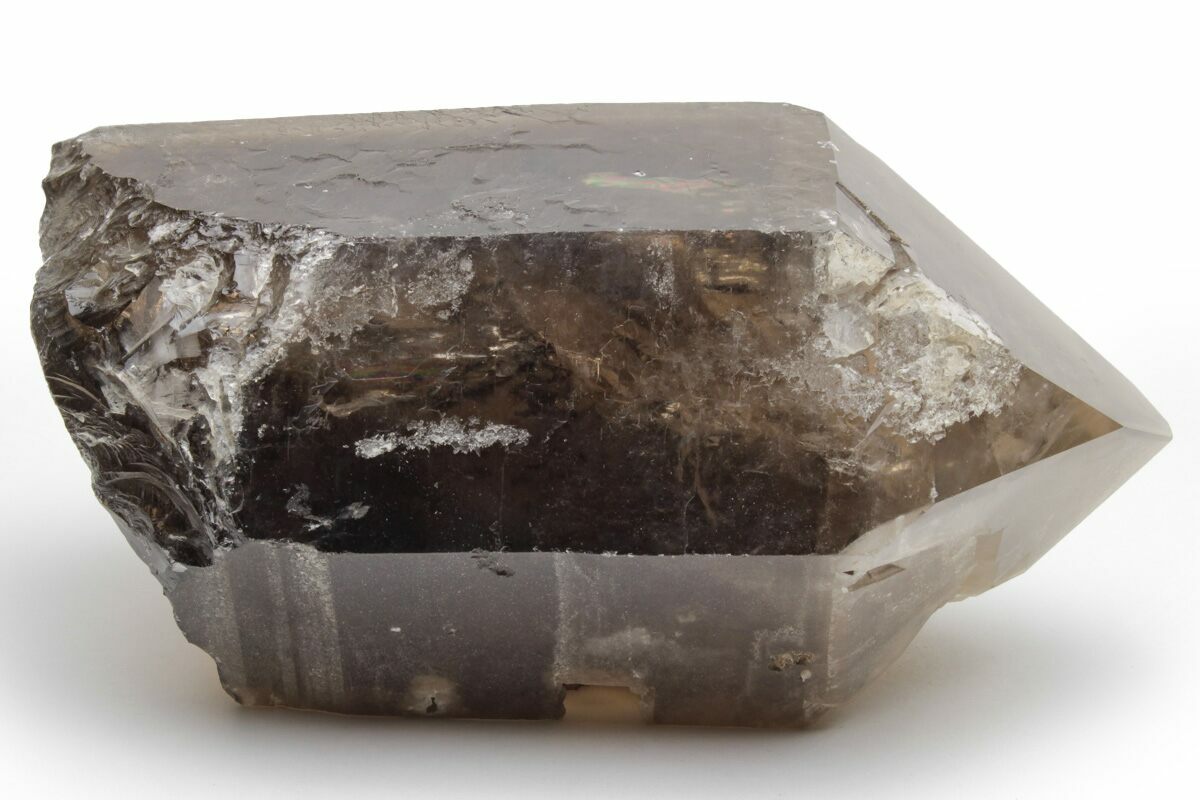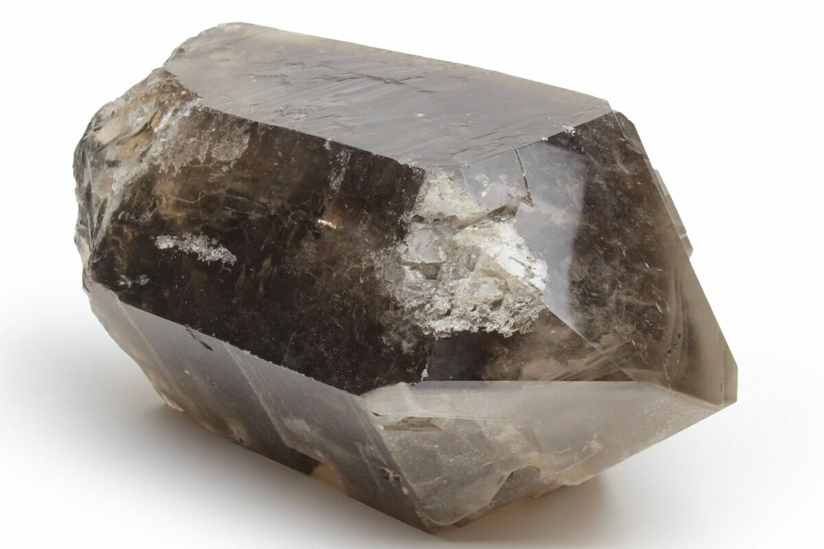 Smoky quartz is a variety of quartz distinguished by its smoky gray to deep brown or nearly black coloration, a name inspired by the hazy, smoke-like appearance within the crystal. While some specimens can appear very dark or even opaque, most smoky quartz remains at least partially translucent, allowing light to pass through its internal veils and zoning. The color develops when trace amounts of aluminum within the quartz lattice are exposed to natural irradiation over geologic time, subtly altering the crystal structure and producing its characteristic smoky tones.