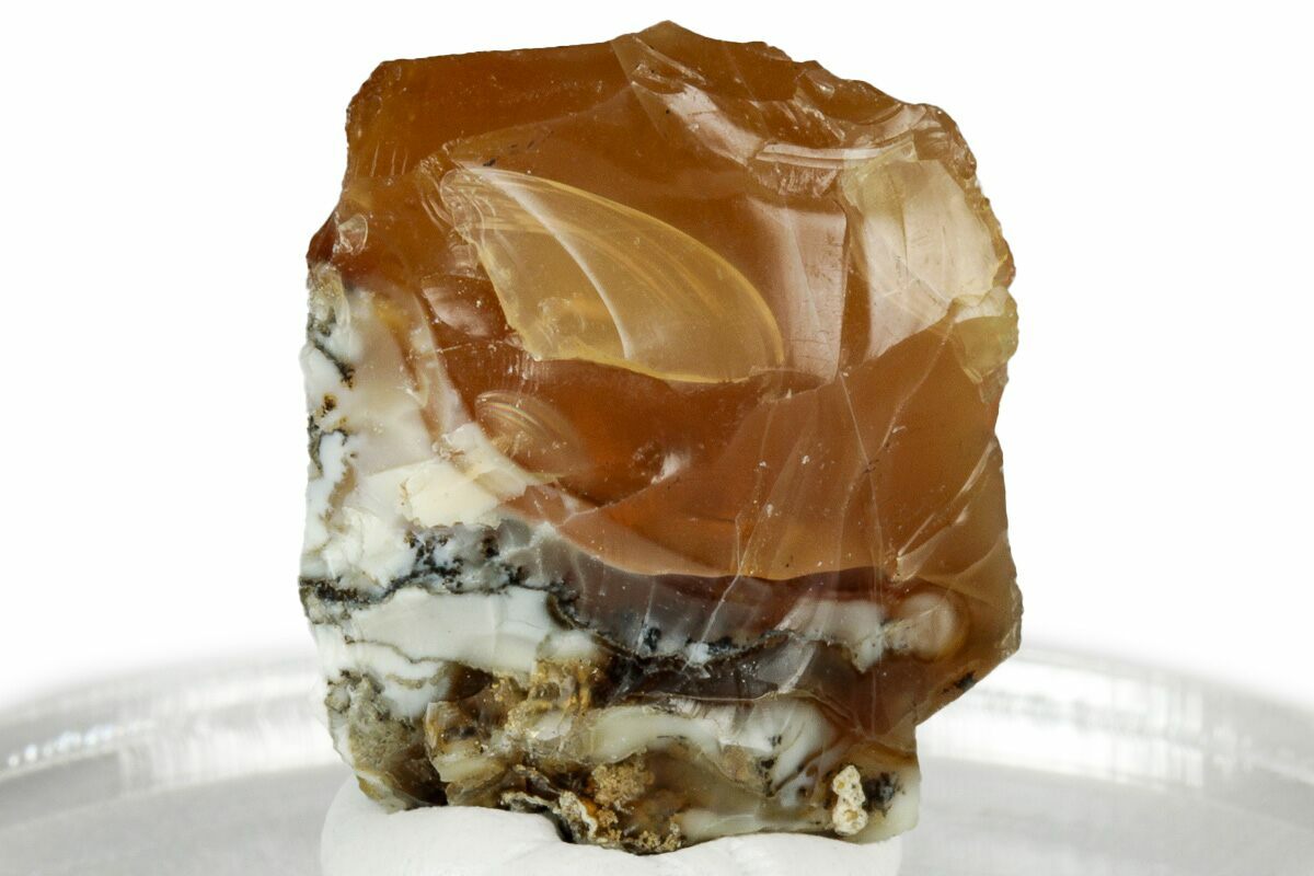 This is a beautiful .7" section of fire opal, collected in the remote mountains of Eastern Oregon. It is known for its vivid orange and yellow hues, obtaining its fiery colors from trace amounts of iron. Unlike many opals, it can be transparent, glowing brightly when lit from behind.