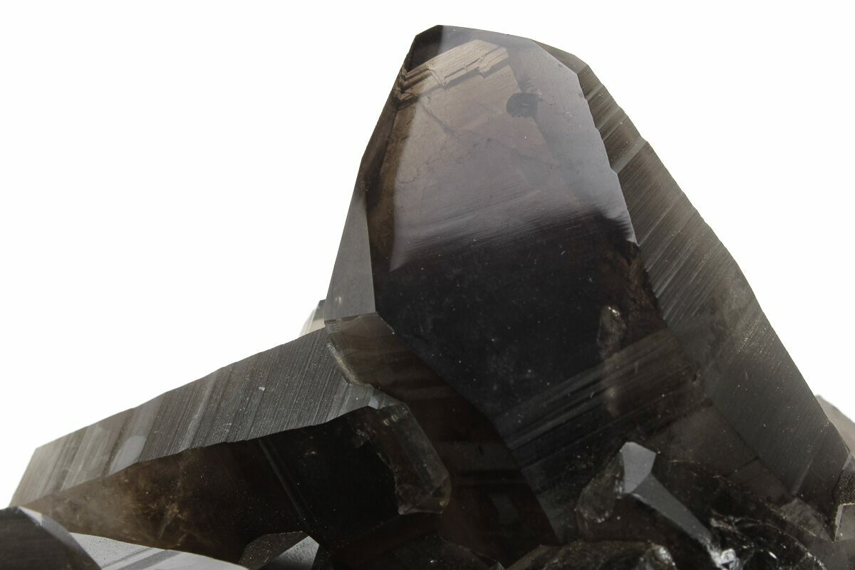 This is a 7" wide, smoky quartz crystal cluster from Minas Gerais, Brazil. The crystals are in great condition and the specimen has a flat base, allowing for gorgeous, freestanding presentation. Some of the terminations have undergone some polishing.