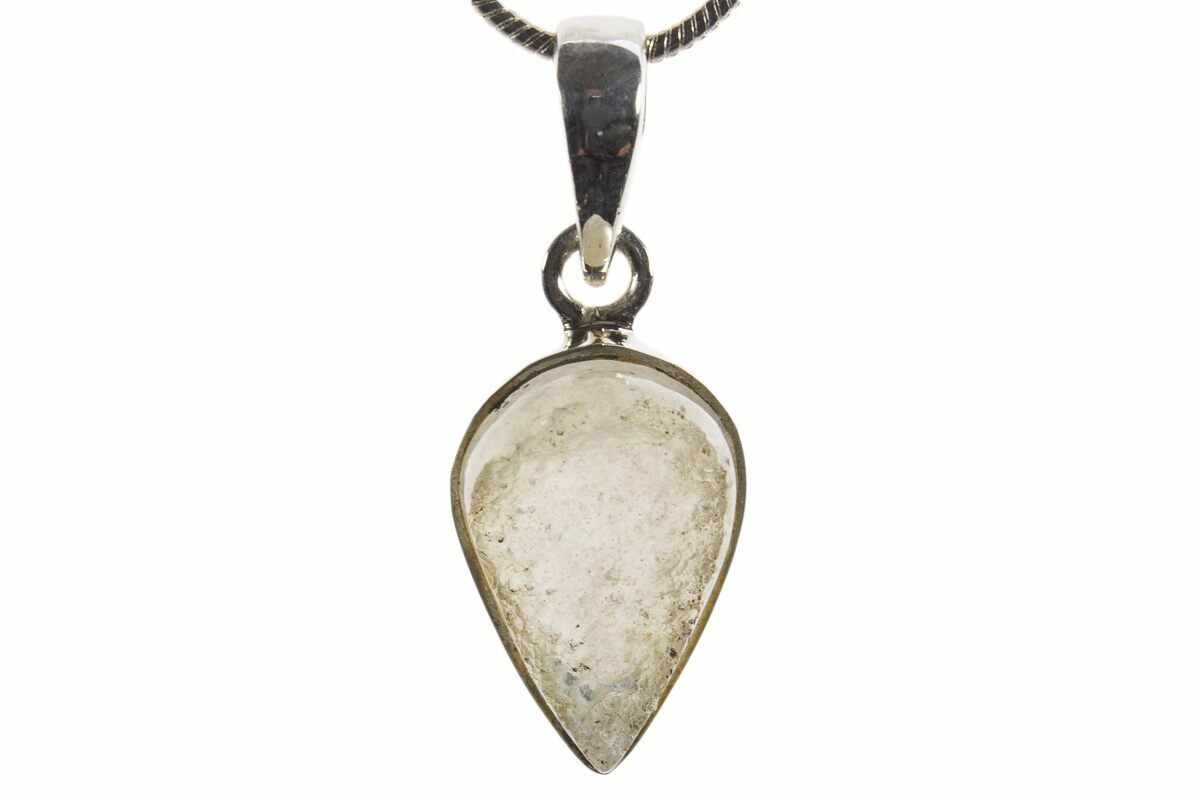This is a 2.4 gram piece of Libyan desert glass, a type of meteorite impactite found along the Egyptian and Libyan borders. The impactite cabochon was inlaid in a 925 sterling silver pendant setting that allows you to take your favorite impactite on the go.