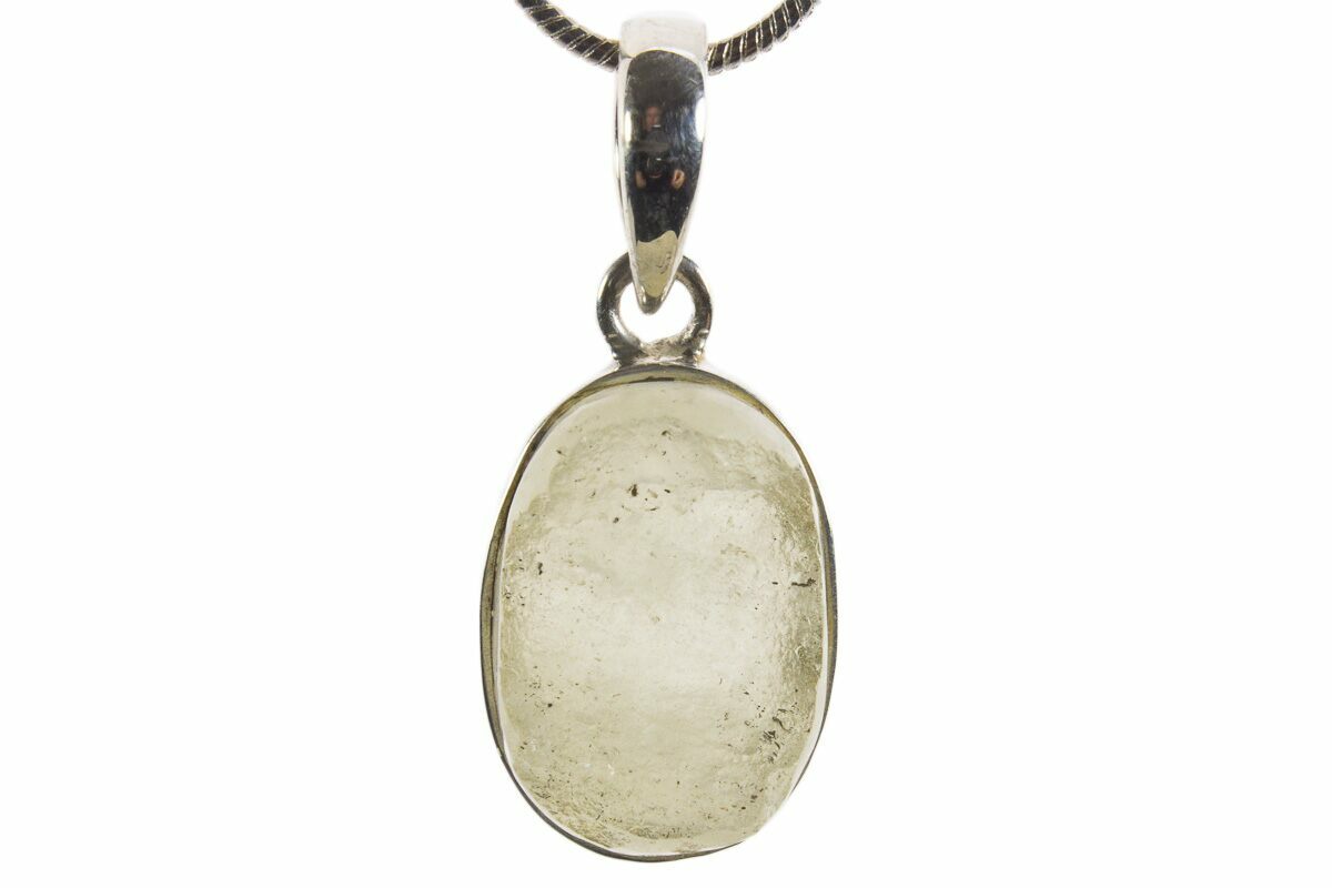This is a 2.9 gram piece of Libyan desert glass, a type of meteorite impactite found along the Egyptian and Libyan borders. The impactite cabochon was inlaid in a 925 sterling silver pendant setting that allows you to take your favorite impactite on the go.