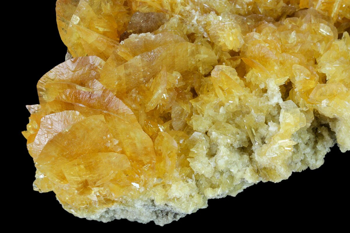 This is a beautiful yellow selenite crystal aggregation that was collected from Peru. The crystals are highly fluorescent (yellow-green) under short wave UV and emit phosphorescent light that remains several seconds after the UV light is turned off. It comes with an acrylic display stand.