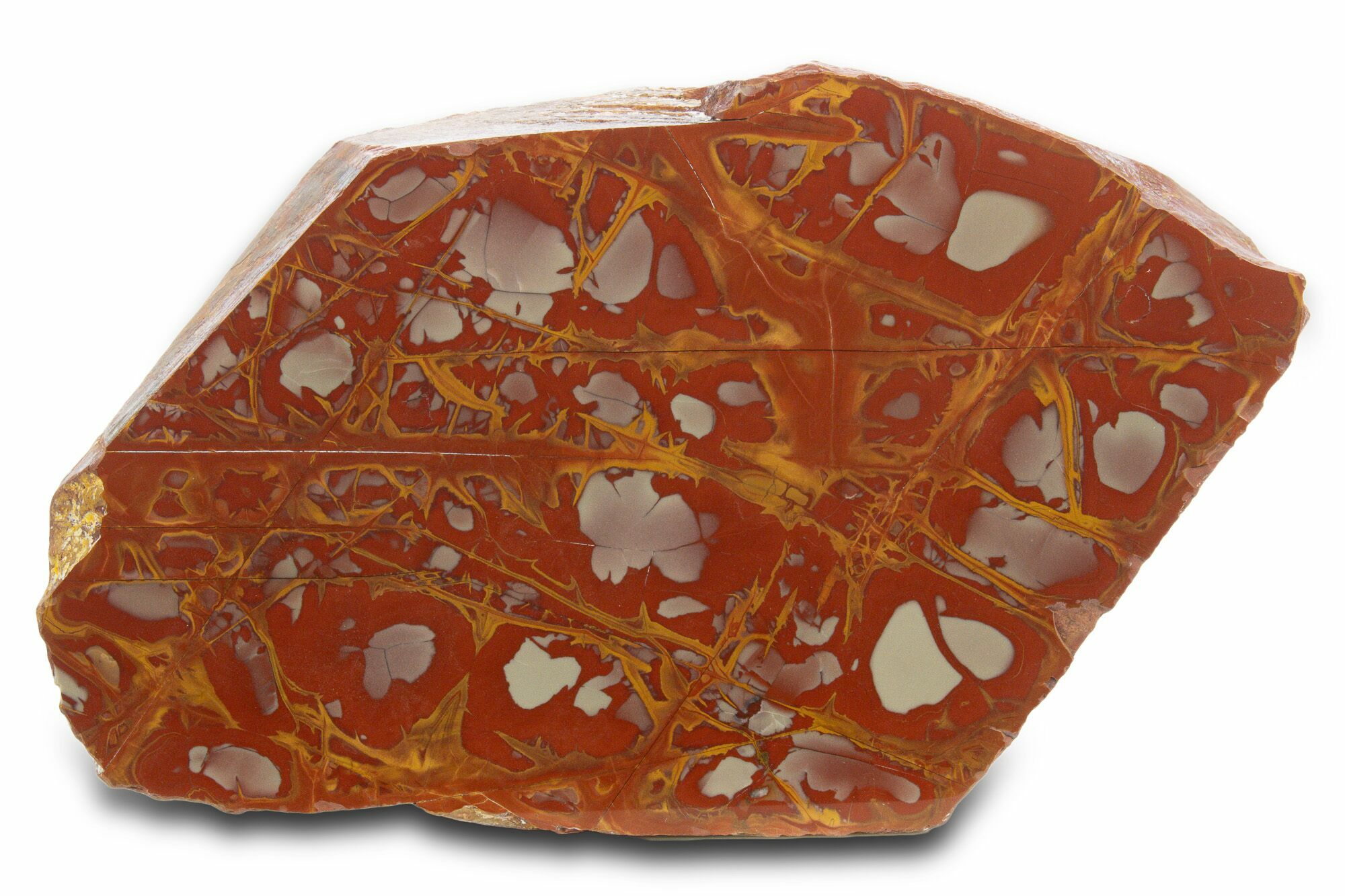 This is a very colorful, 8.5" wide, section of Noreena Jasper from the Hamersley Basin in Australia. It has been polished to a mirror-like finish on one side.