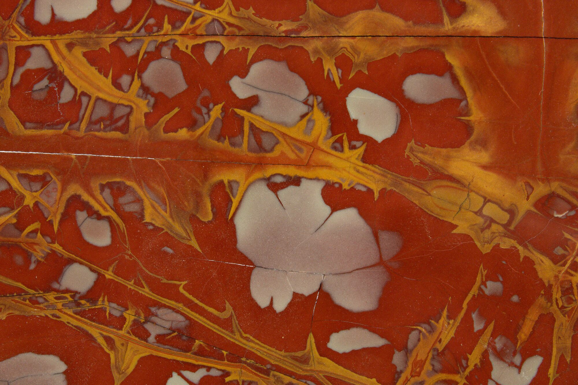 Noreena jasper is a silicified pelite (mudstone) that occurs in the Jeerinah Formation. It was deposited during the Late Archean, an astounding 2.7 billion years ago! Due to its unique, colorful patterning, it is often used in jewelry and as a decorative stone.