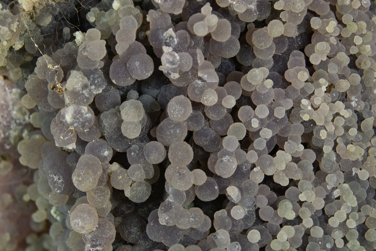 These formations were created over millions of years as silica-rich fluids filled voids and crevices in volcanic rock. As the fluids cooled, they precipitated tiny quartz crystals, which slowly grew in layers to create the nodules we see today. Its mineral composition and appearance set it apart from traditional agates, and it would be most technically correct to call it a "amethystine botryoidal chalcedony". As a collectible mineral, it’s relatively durable but should be kept out of direct sunlight to prevent color fading.