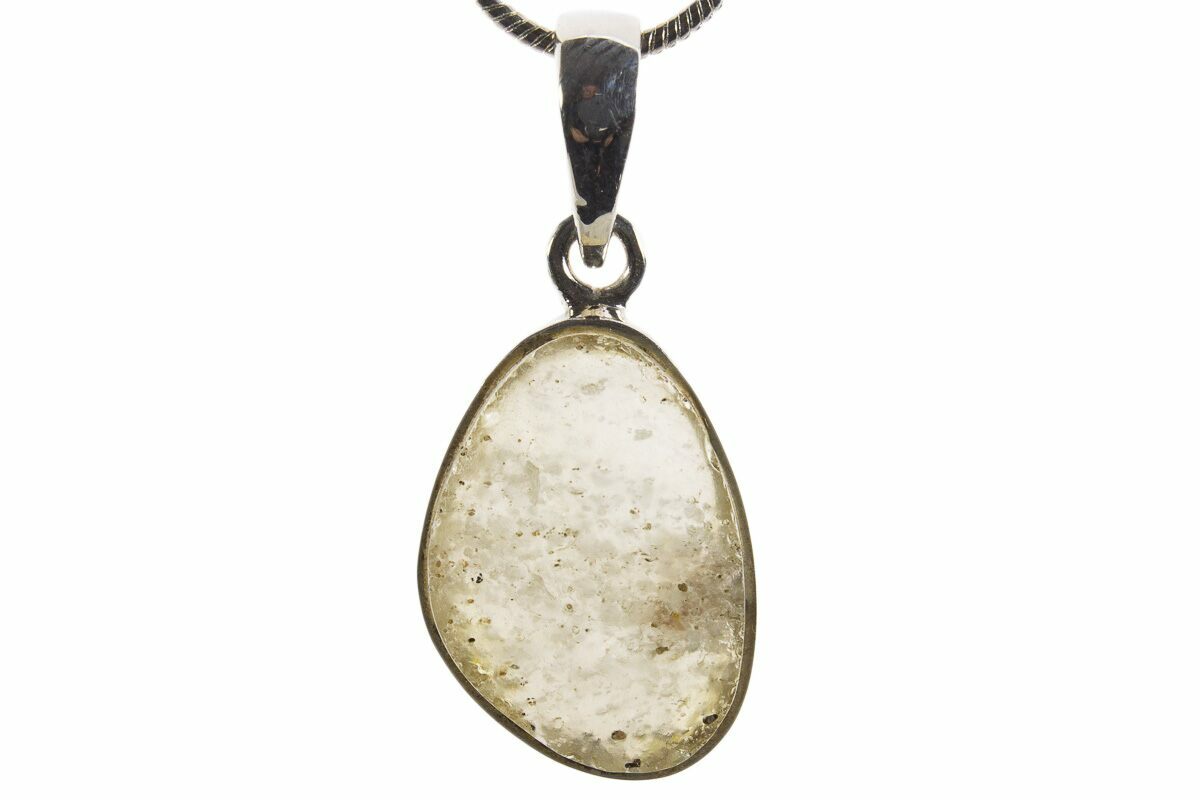 This is a 2.9 gram piece of Libyan desert glass, a type of meteorite impactite found along the Egyptian and Libyan borders. The impactite cabochon was inlaid in a 925 sterling silver pendant setting that allows you to take your favorite impactite on the go.