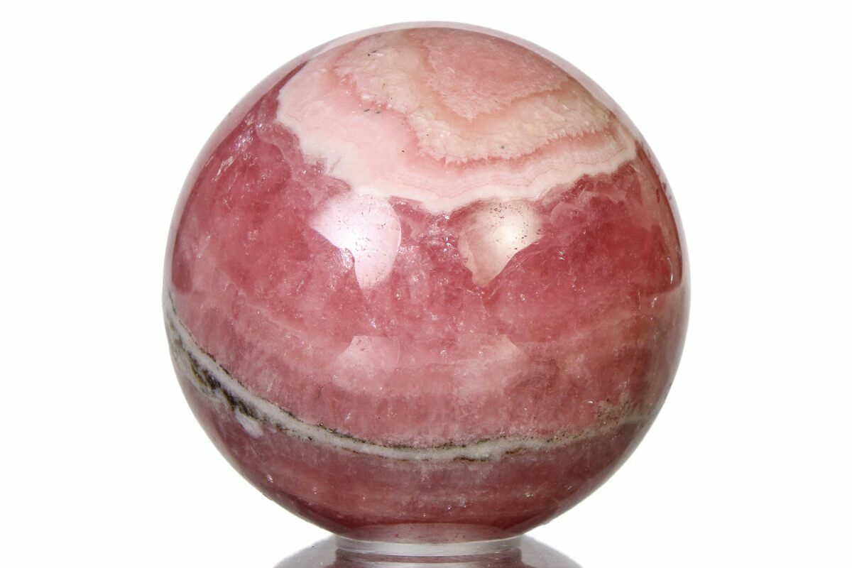 This is a gorgeous, polished sphere formed from a banded rhodochrosite formation collected at the famous Capillitas Mine in Argentina. The sphere has been flawlessly polished to a glossy finish.