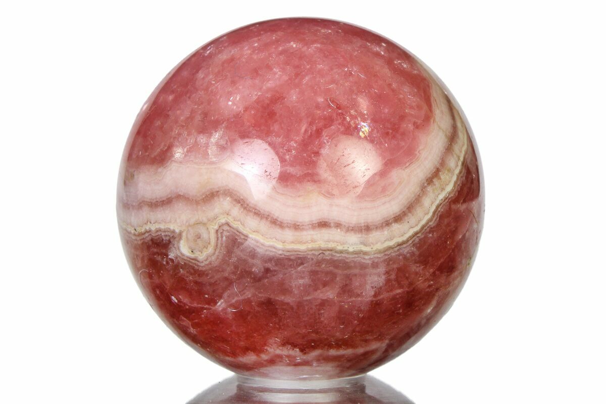 This is a gorgeous, polished sphere formed from a banded rhodochrosite formation collected at the famous Capillitas Mine in Argentina. The sphere has been flawlessly polished to a glossy finish.