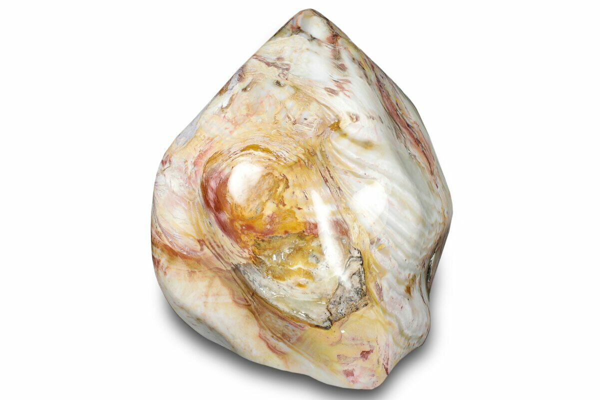 This is a beautifully crafted, 9.1" tall polished free-standing sculpture made out of jasper from Madagascar. It features a host of pastel colors, as well as pockets of agate and quartz.
