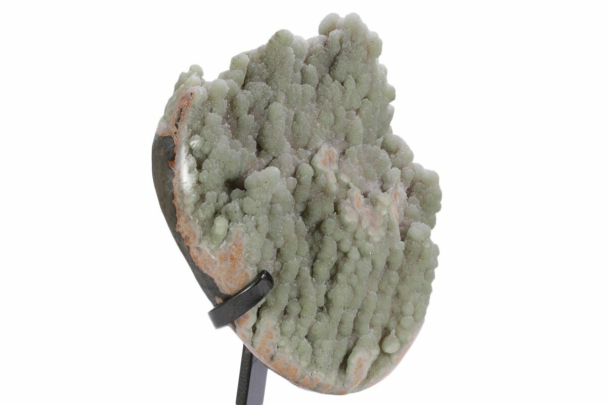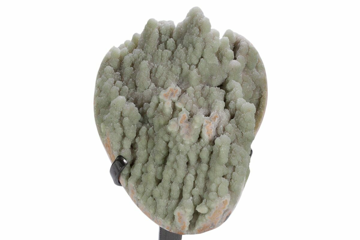 9.1" Sparkling Green Prasiolite Quartz Formation on Metal Stand