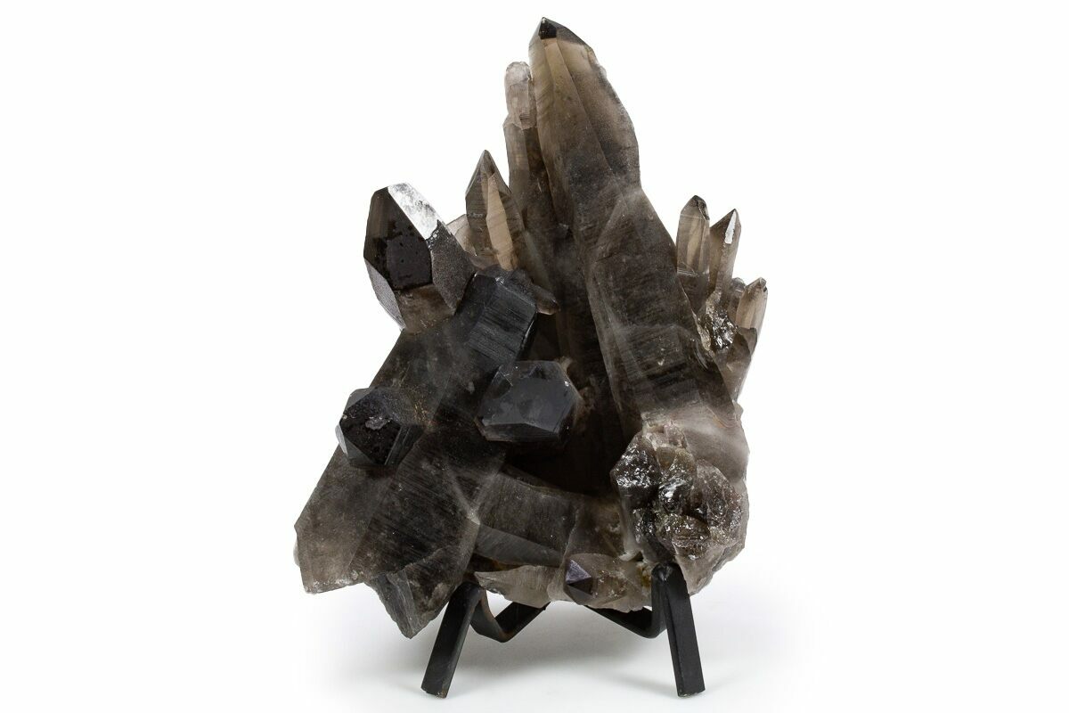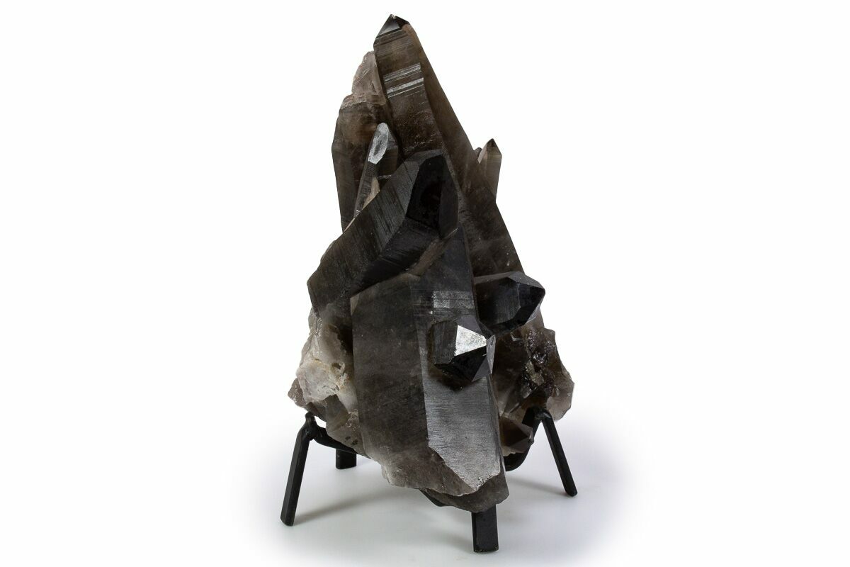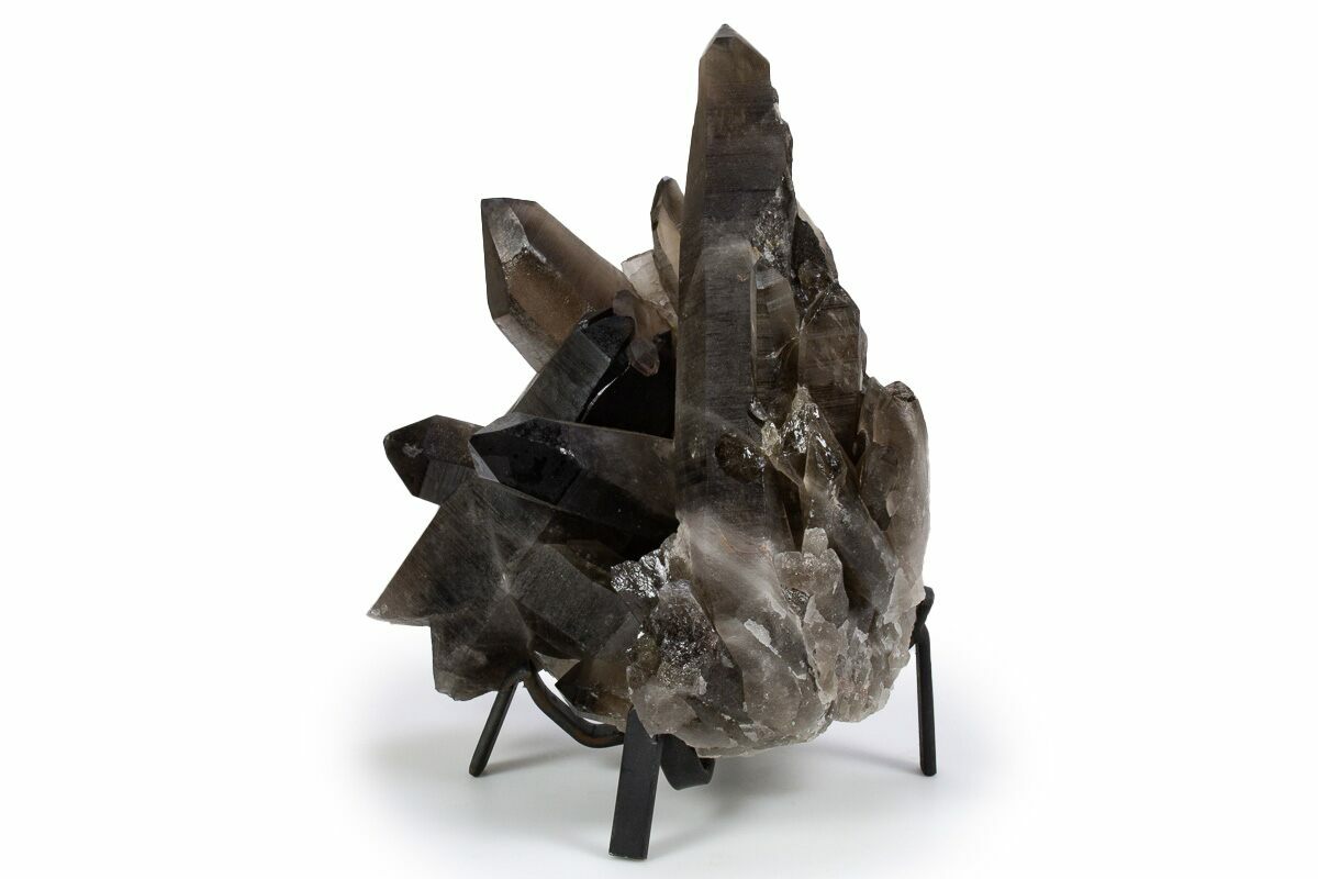 9.5" Dark Smoky Quartz Crystal Cluster on Metal Stand - Brazil
